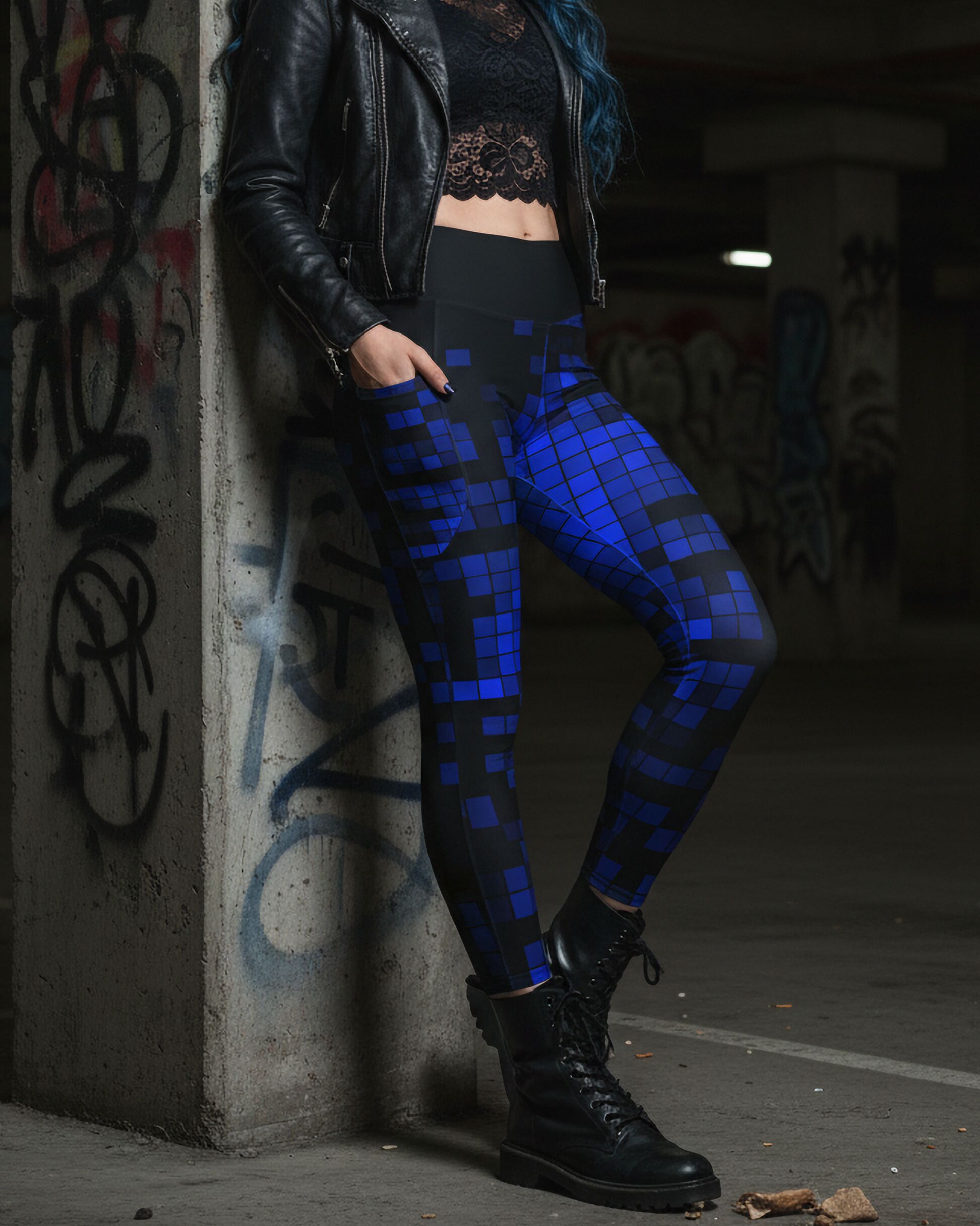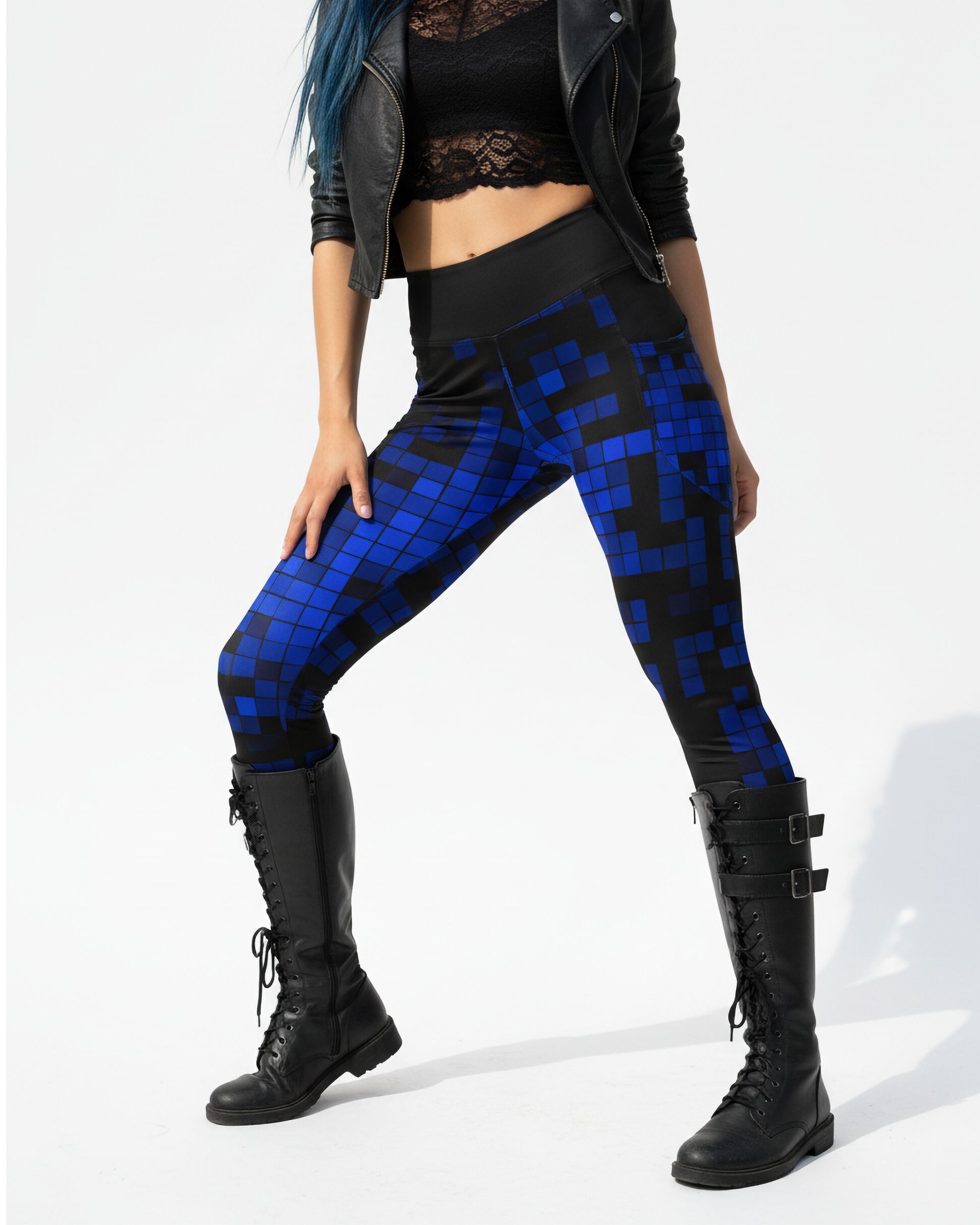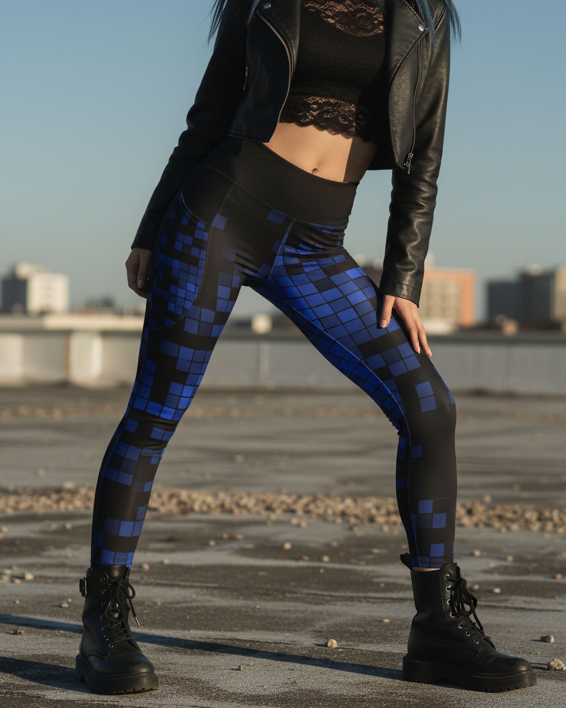 Upgrade your streetwear game with the Blue Pixel Leggings, designed for those who love a mix of tech-inspired design and modern comfort. The electric blue pixel pattern over a black base gives these leggings a futuristic digital vibe that stands out in every setting — from gym to city streets.