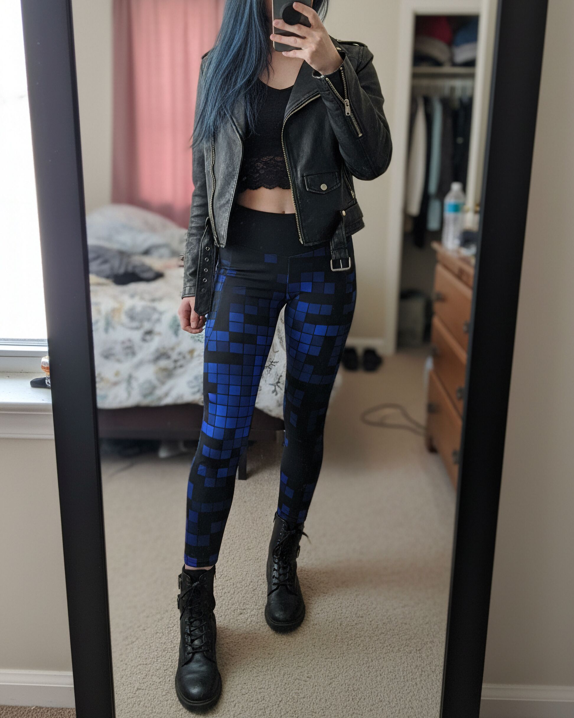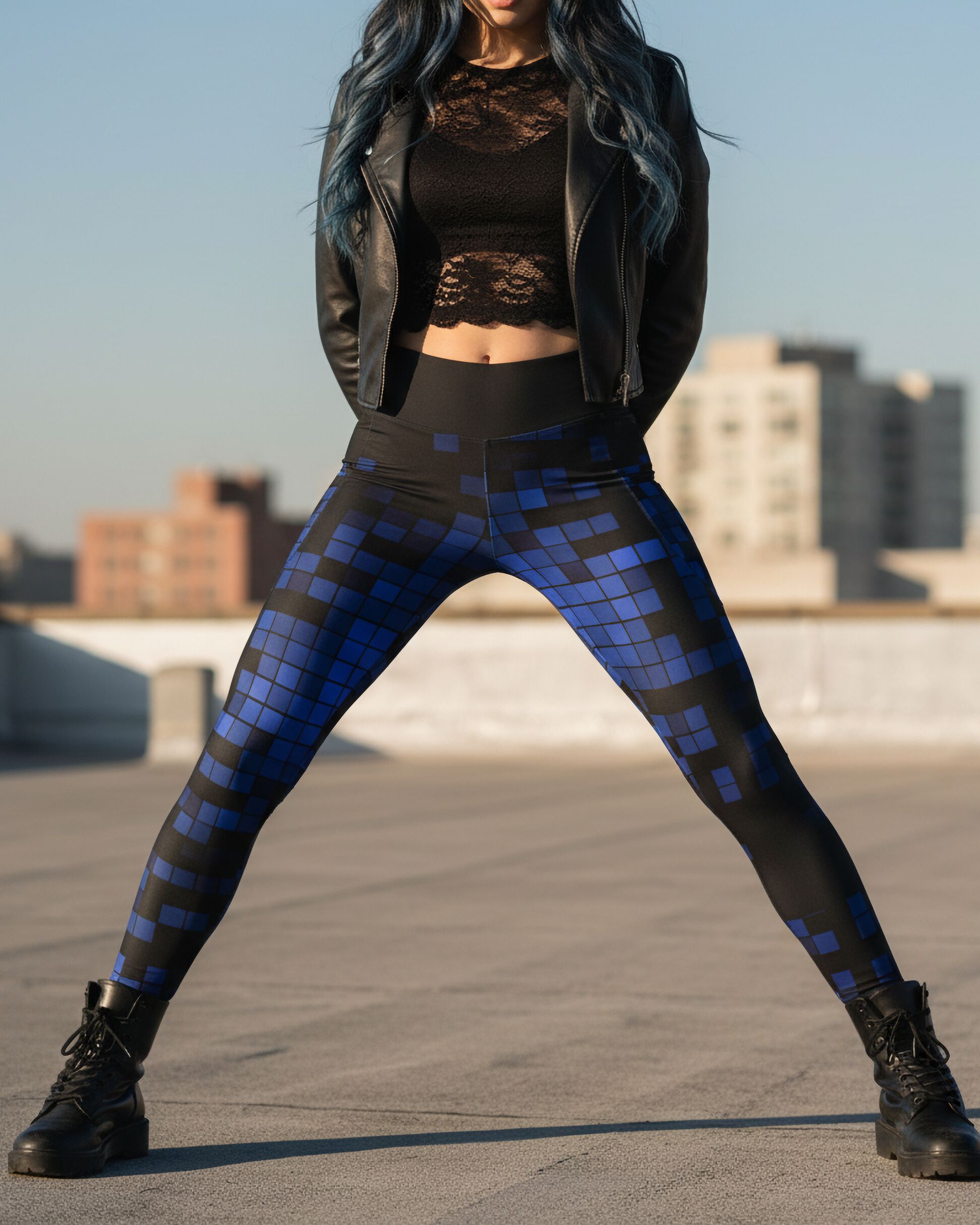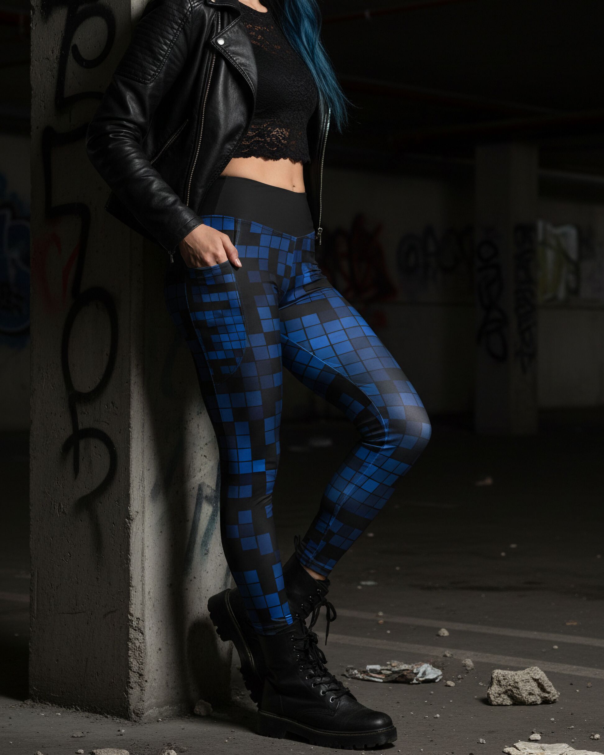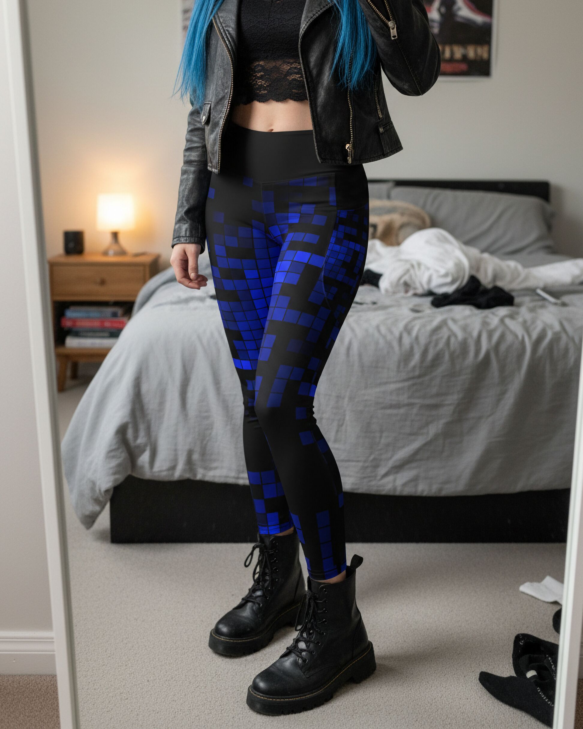 Upgrade your streetwear game with the Blue Pixel Leggings, designed for those who love a mix of tech-inspired design and modern comfort. The electric blue pixel pattern over a black base gives these leggings a futuristic digital vibe that stands out in every setting — from gym to city streets.