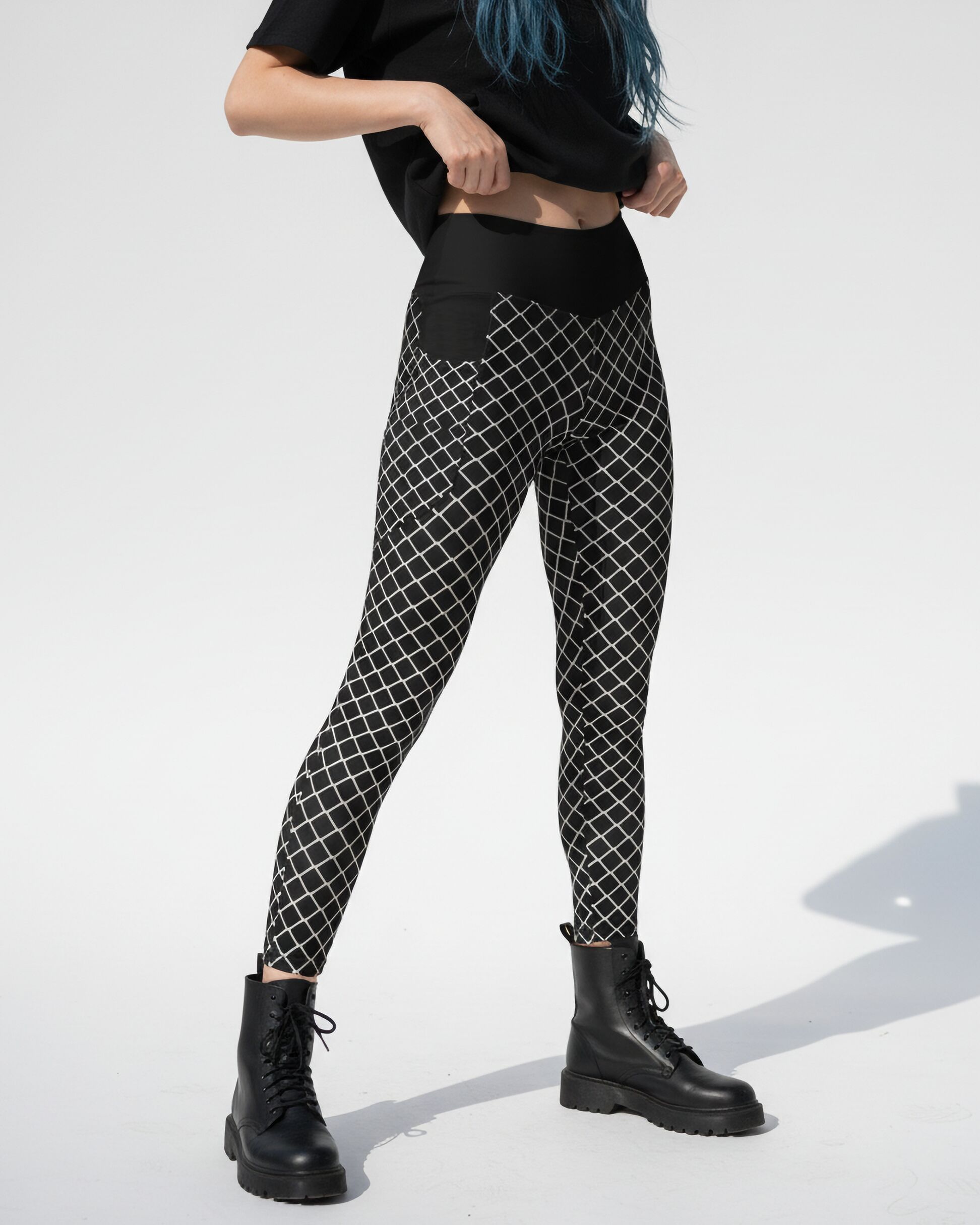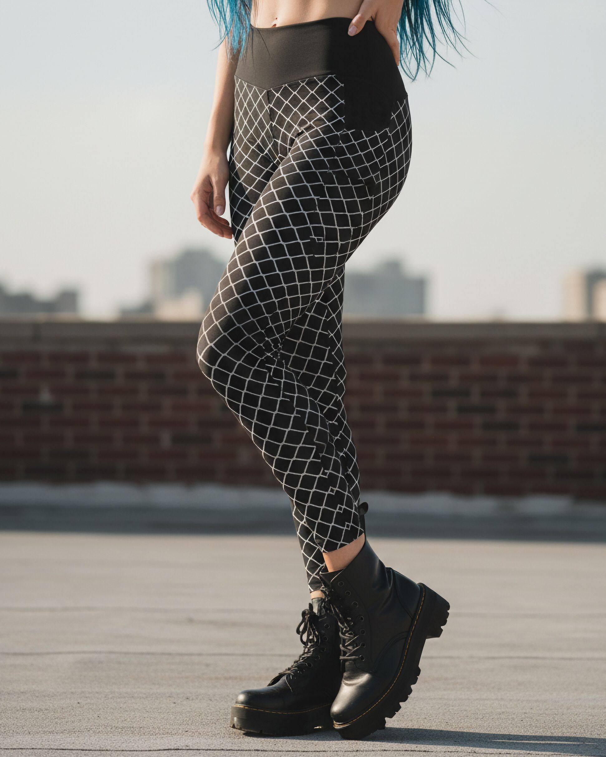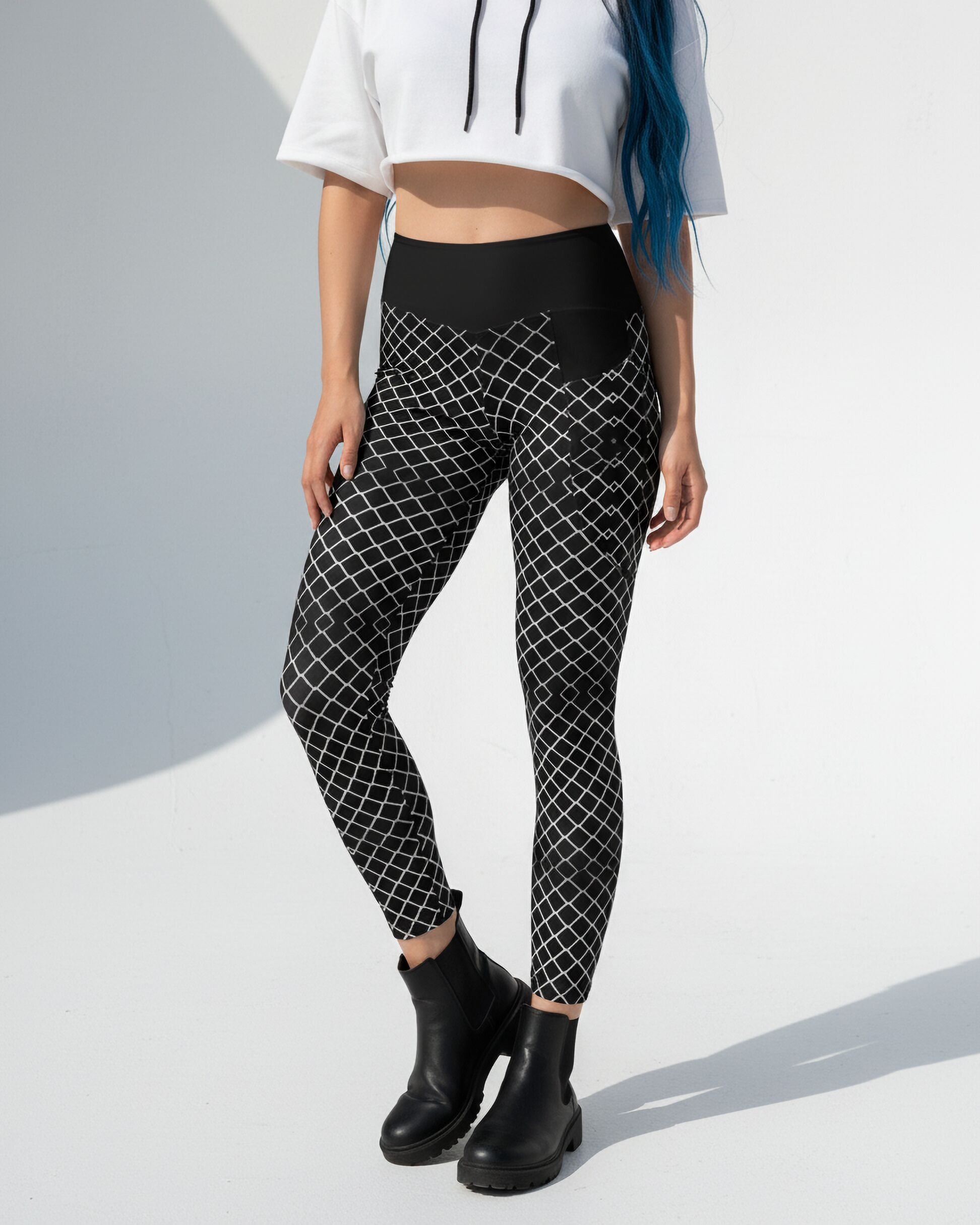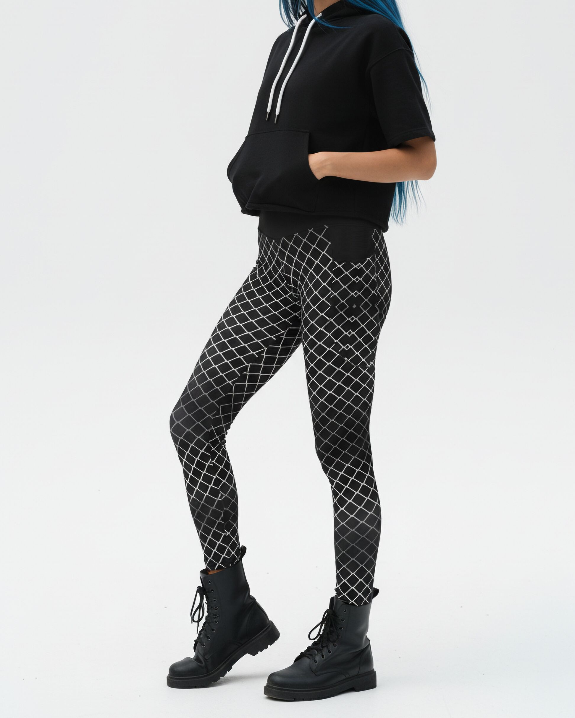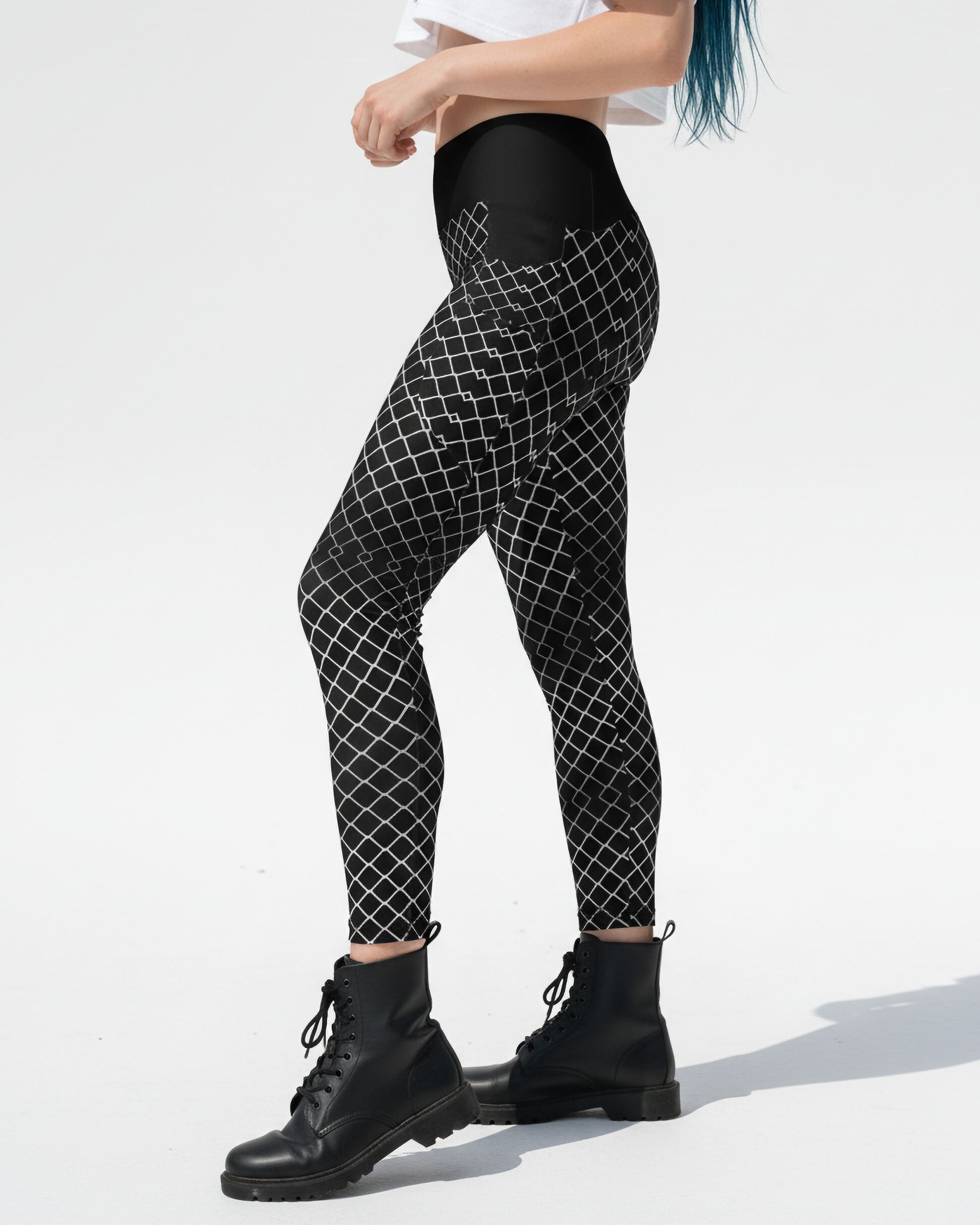 Elevate your urban style with the Romboid Pattern Leggings, featuring a refined geometric diamond print that blends modern minimalism with everyday functionality. Designed for comfort and movement, these leggings are ideal for streetwear, yoga, and all-day wear.