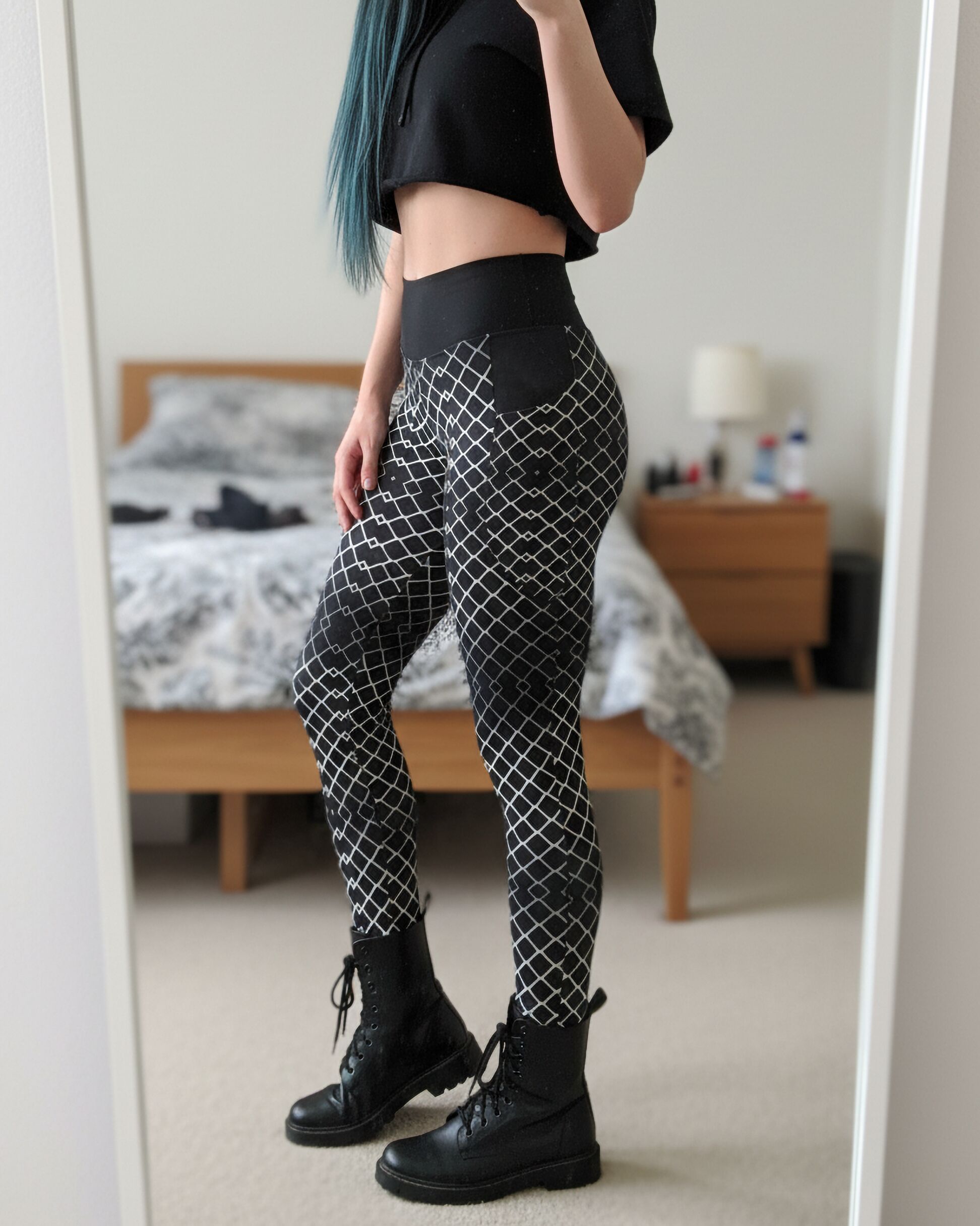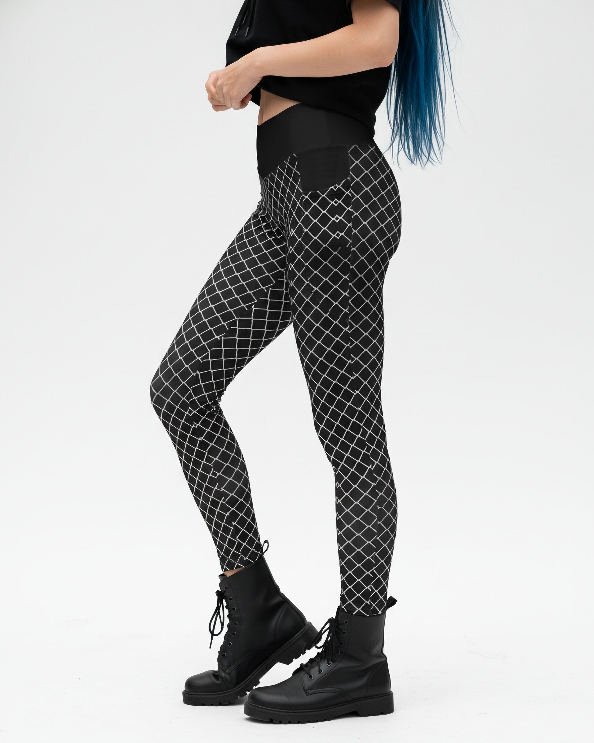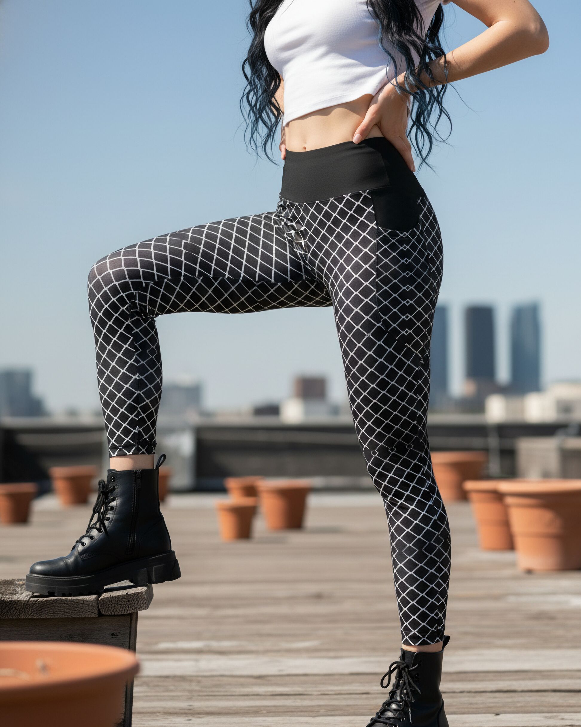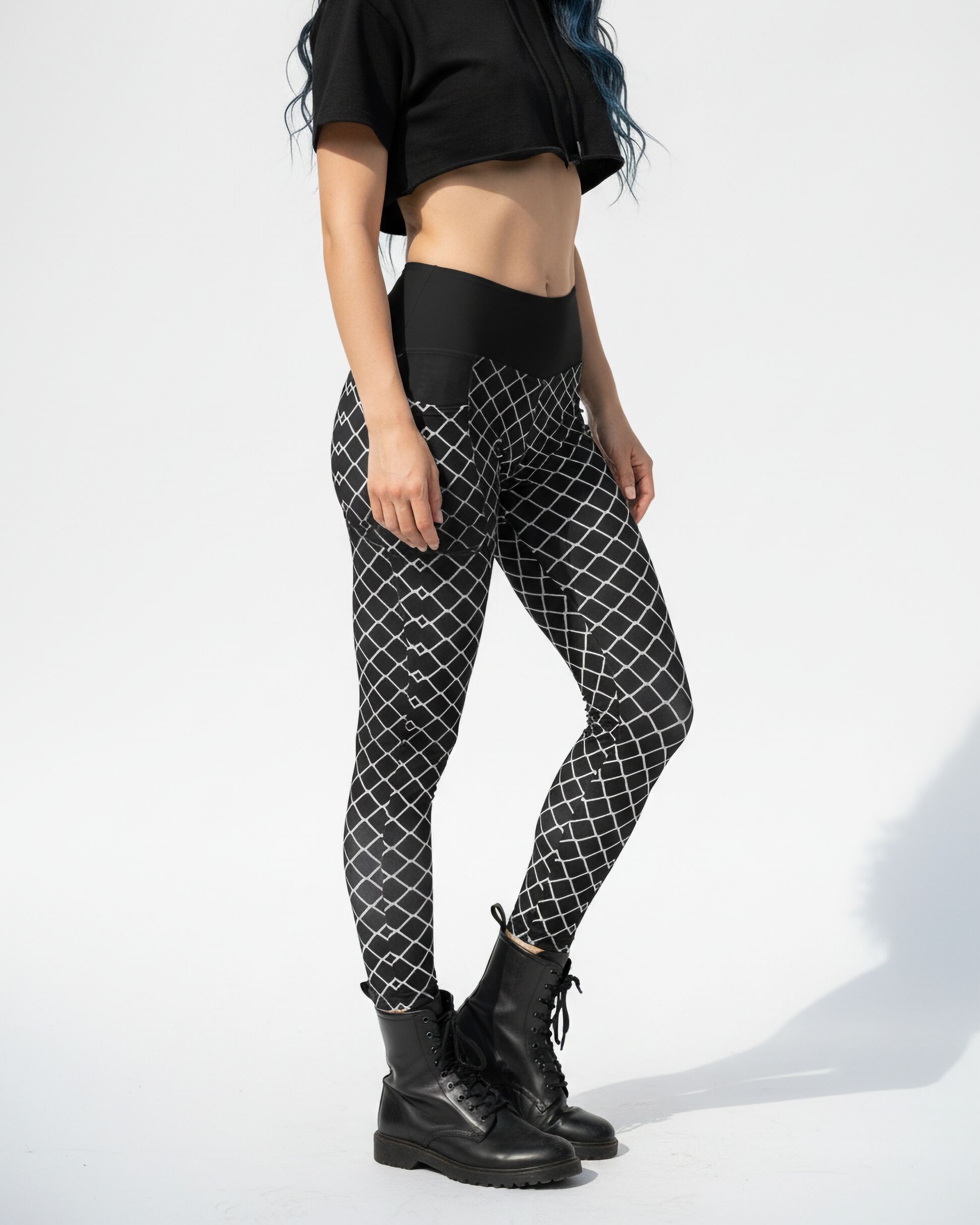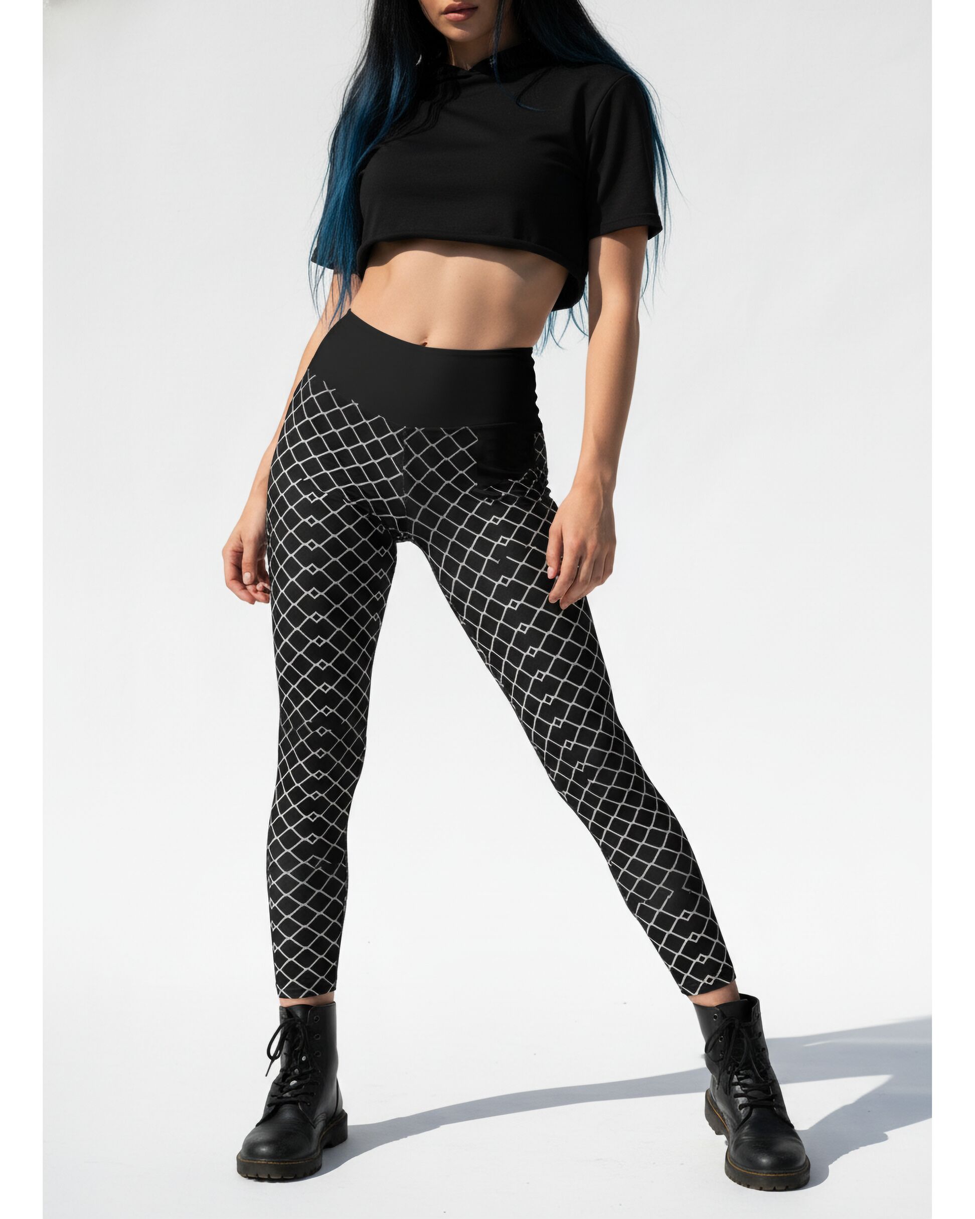 Elevate your urban style with the Romboid Pattern Leggings, featuring a refined geometric diamond print that blends modern minimalism with everyday functionality. Designed for comfort and movement, these leggings are ideal for streetwear, yoga, and all-day wear.