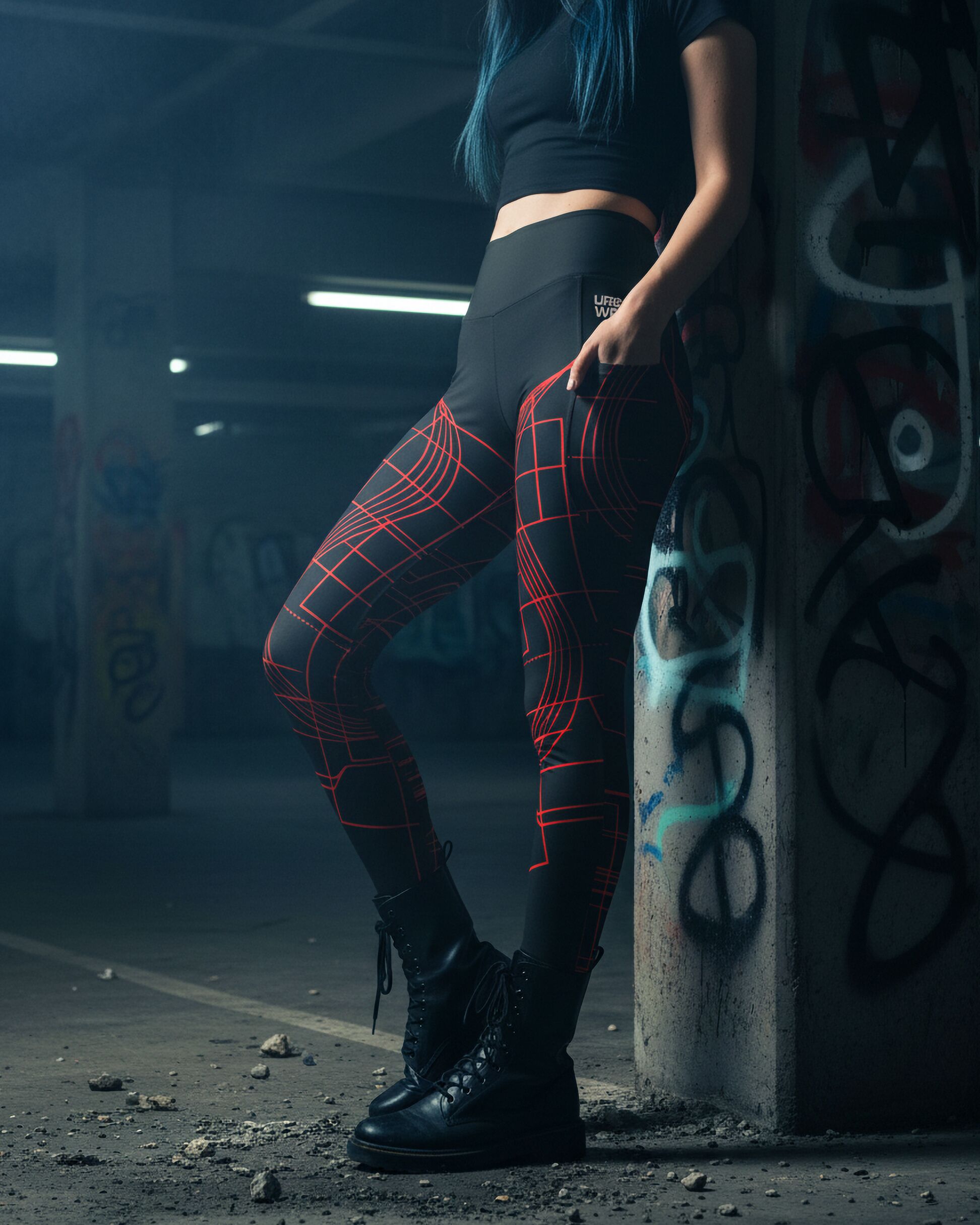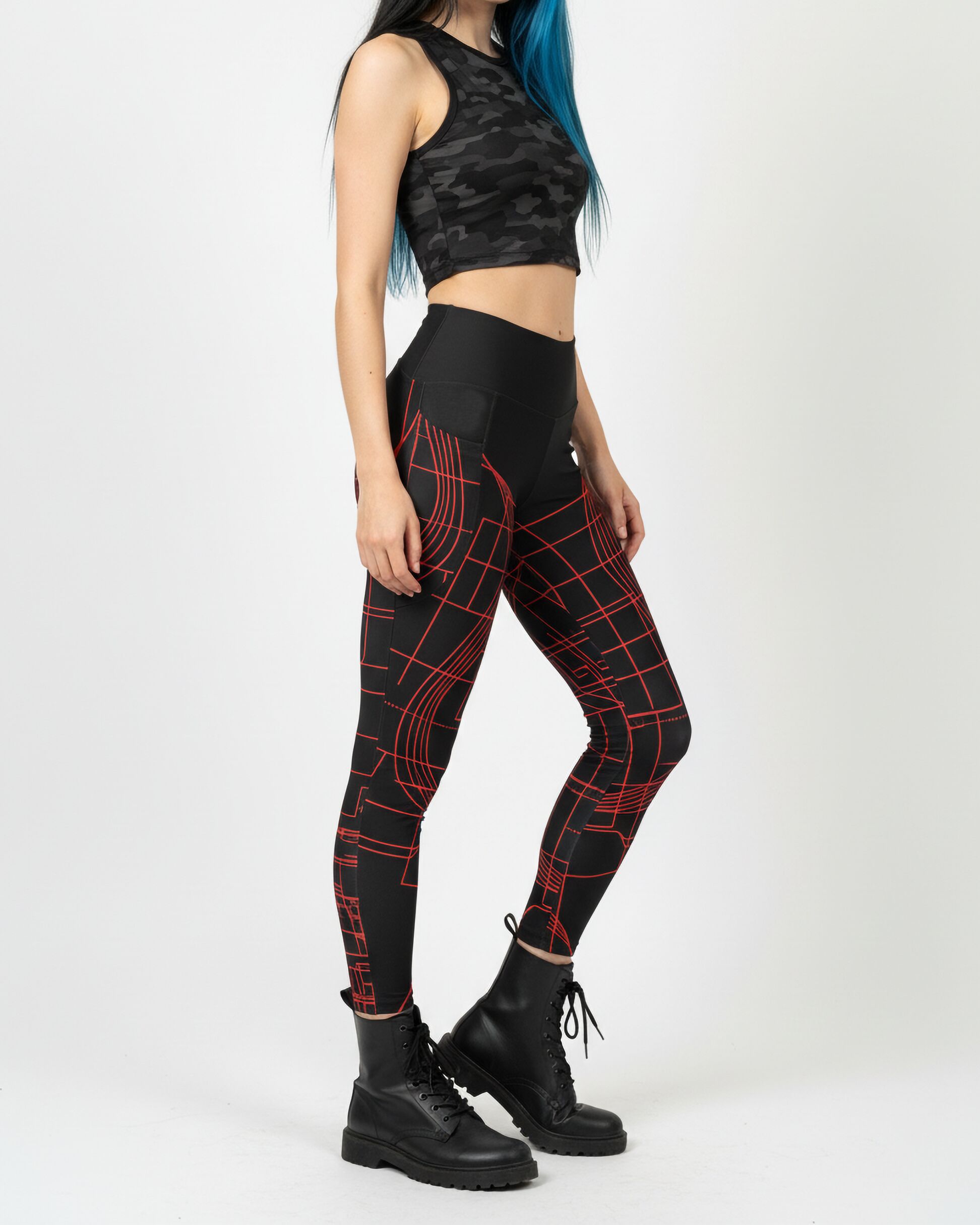 Step into the future with these Cyber Grid Leggings, where techwear aesthetics meet performance comfort. The sharp red circuit-line design on deep black creates a bold cyberpunk vibe — perfect for raves, streetwear, or training sessions where you want to stand out.