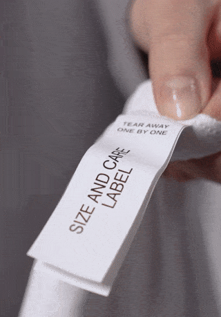 To remove the size and care labels correctly and without damaging the garment, hold the waistband or collar of the product tightly and pull off each label one at a time.