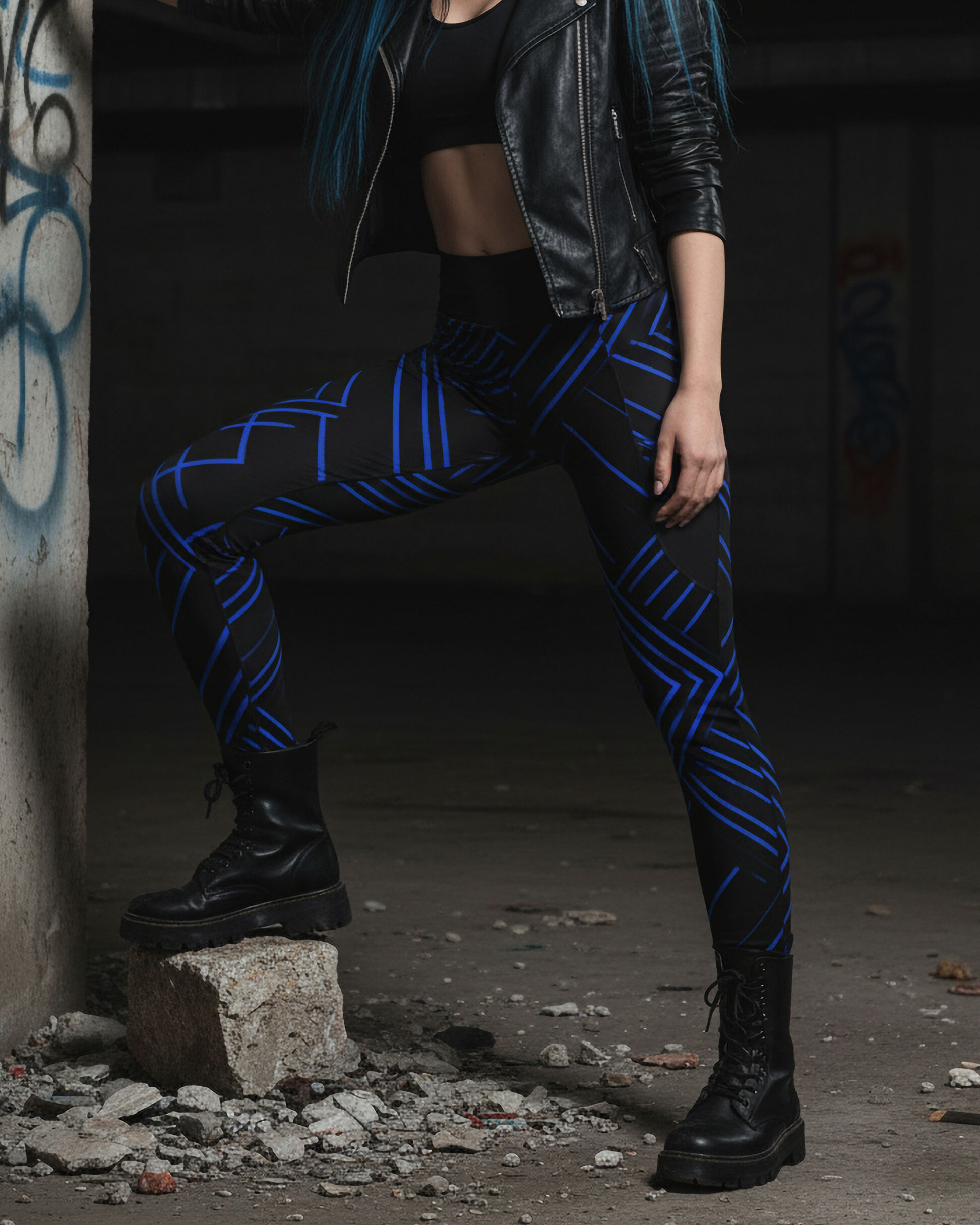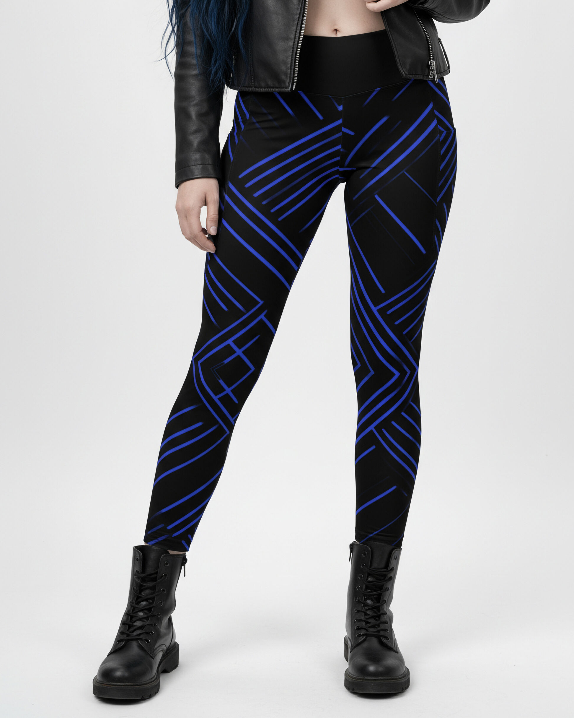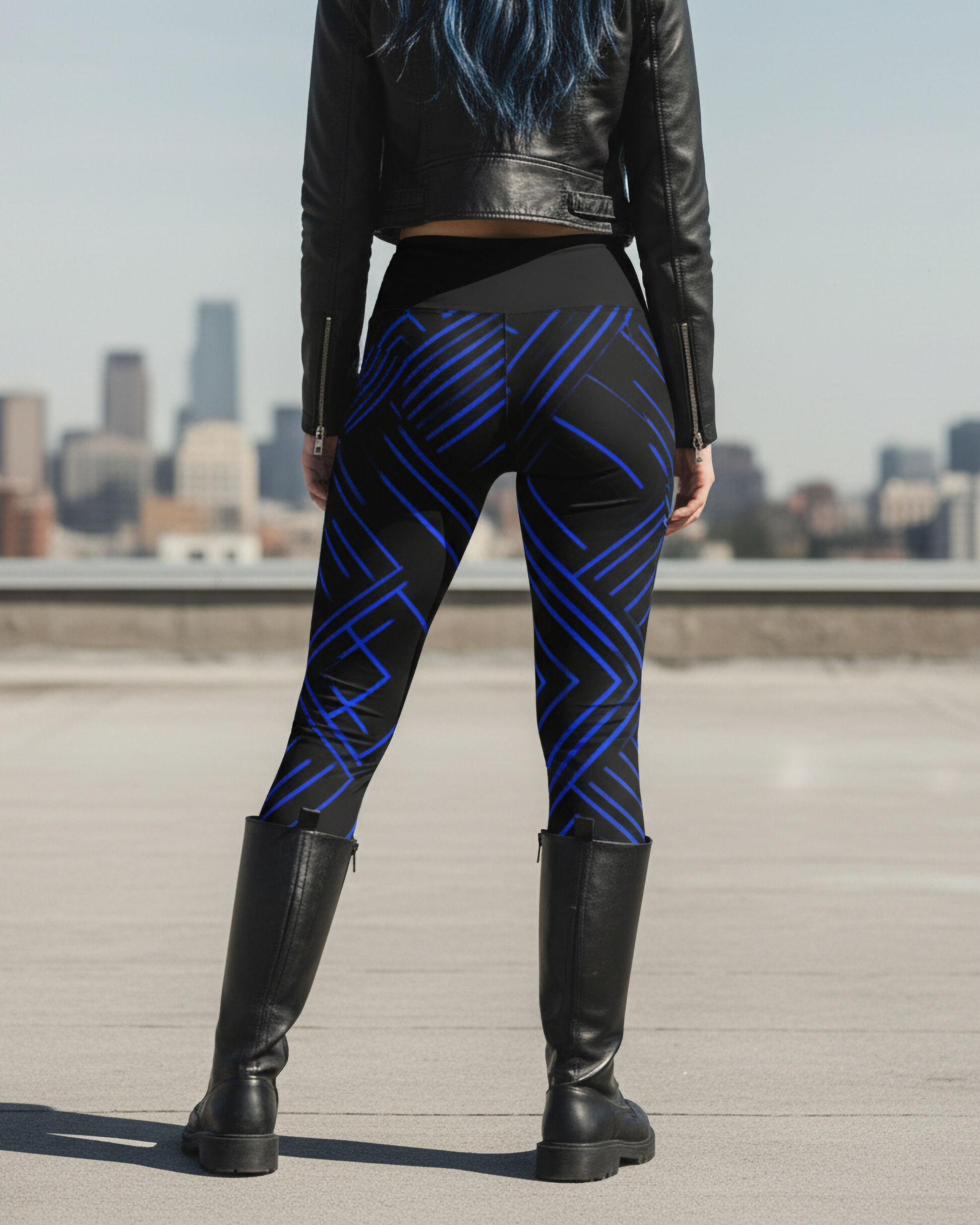 Unleash your urban edge with the Blue Lines Futuristic Leggings — where sleek geometry meets active performance. The sharp electric-blue line pattern over a matte black base delivers a bold, cyber-inspired aesthetic that stands out whether you’re at the gym or hitting the streets.