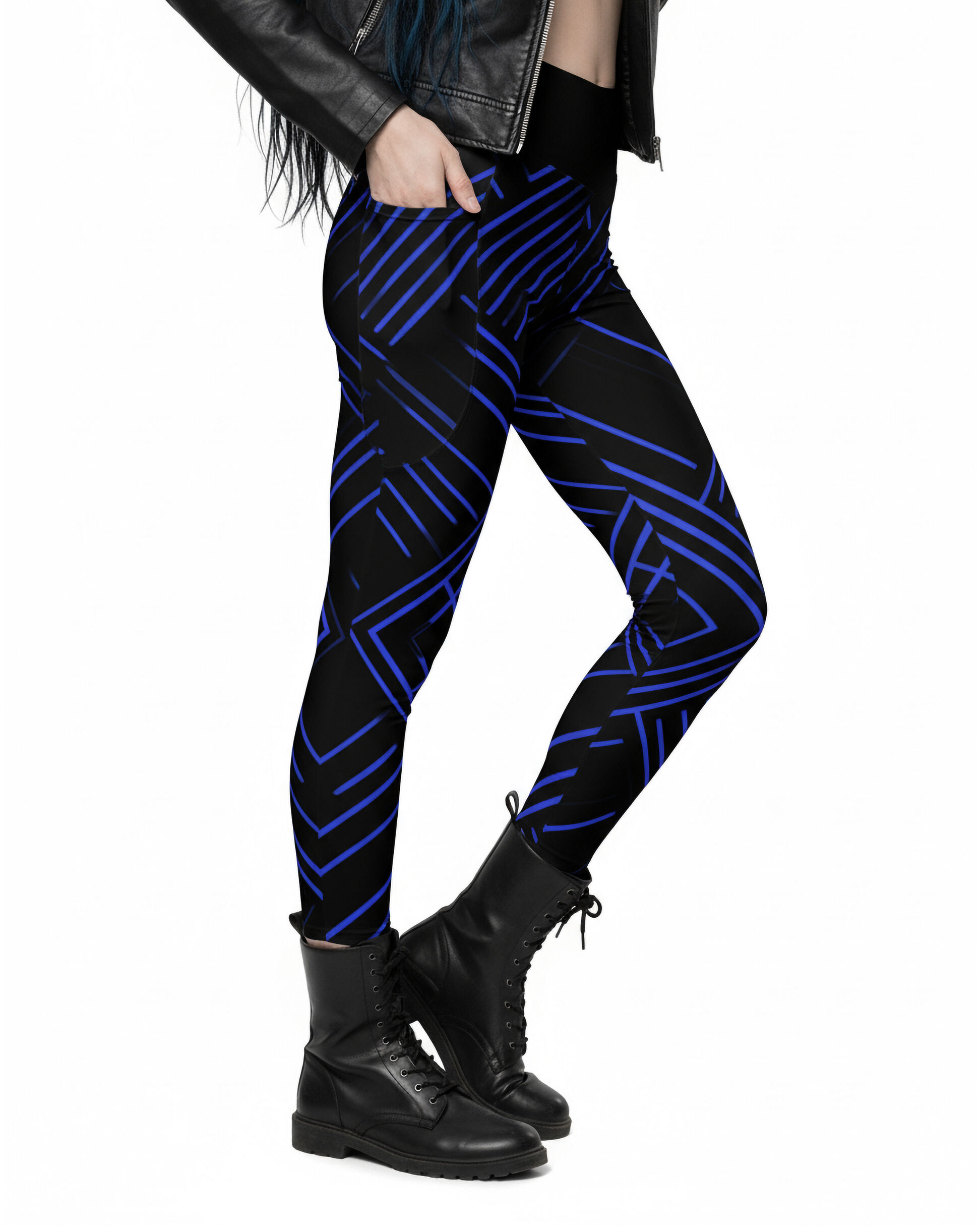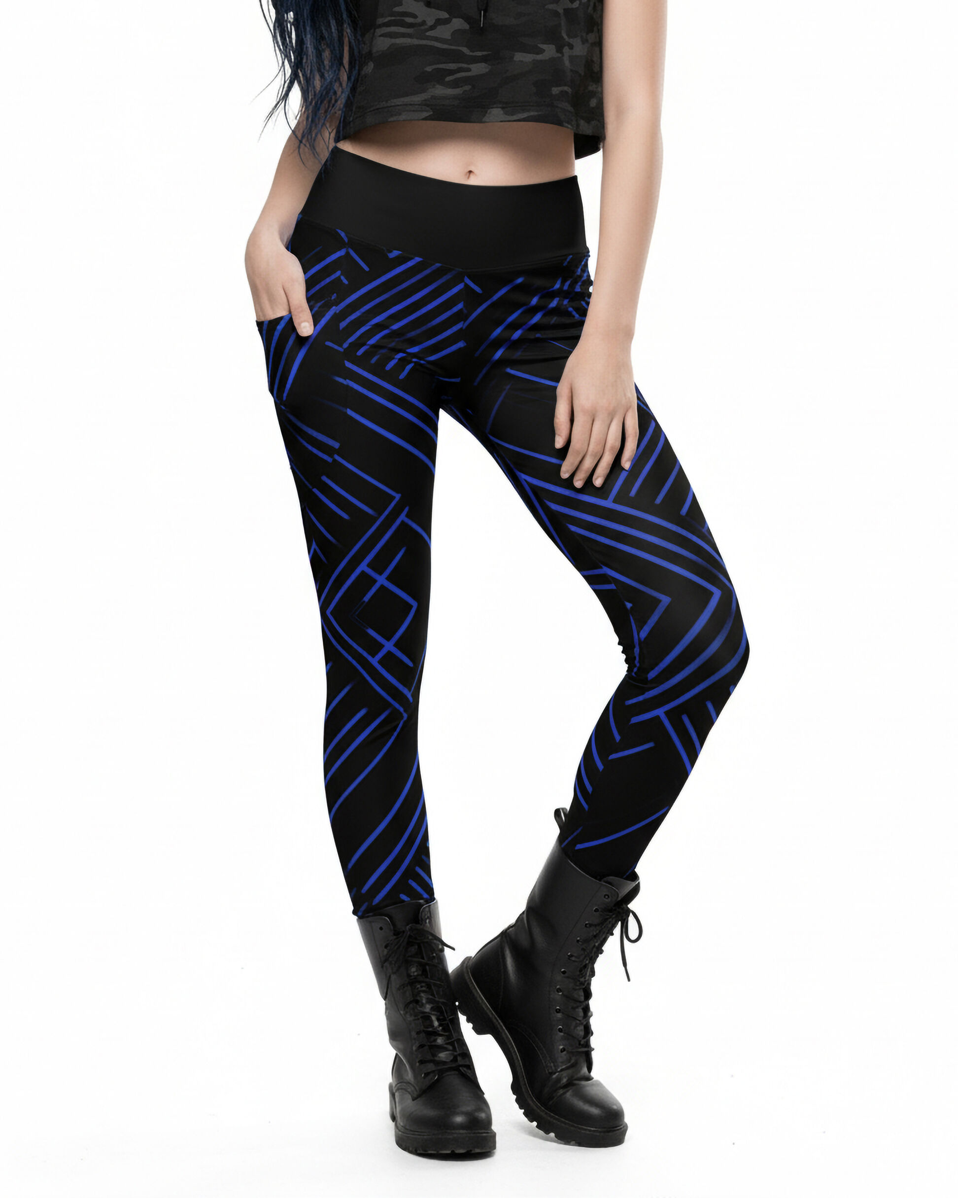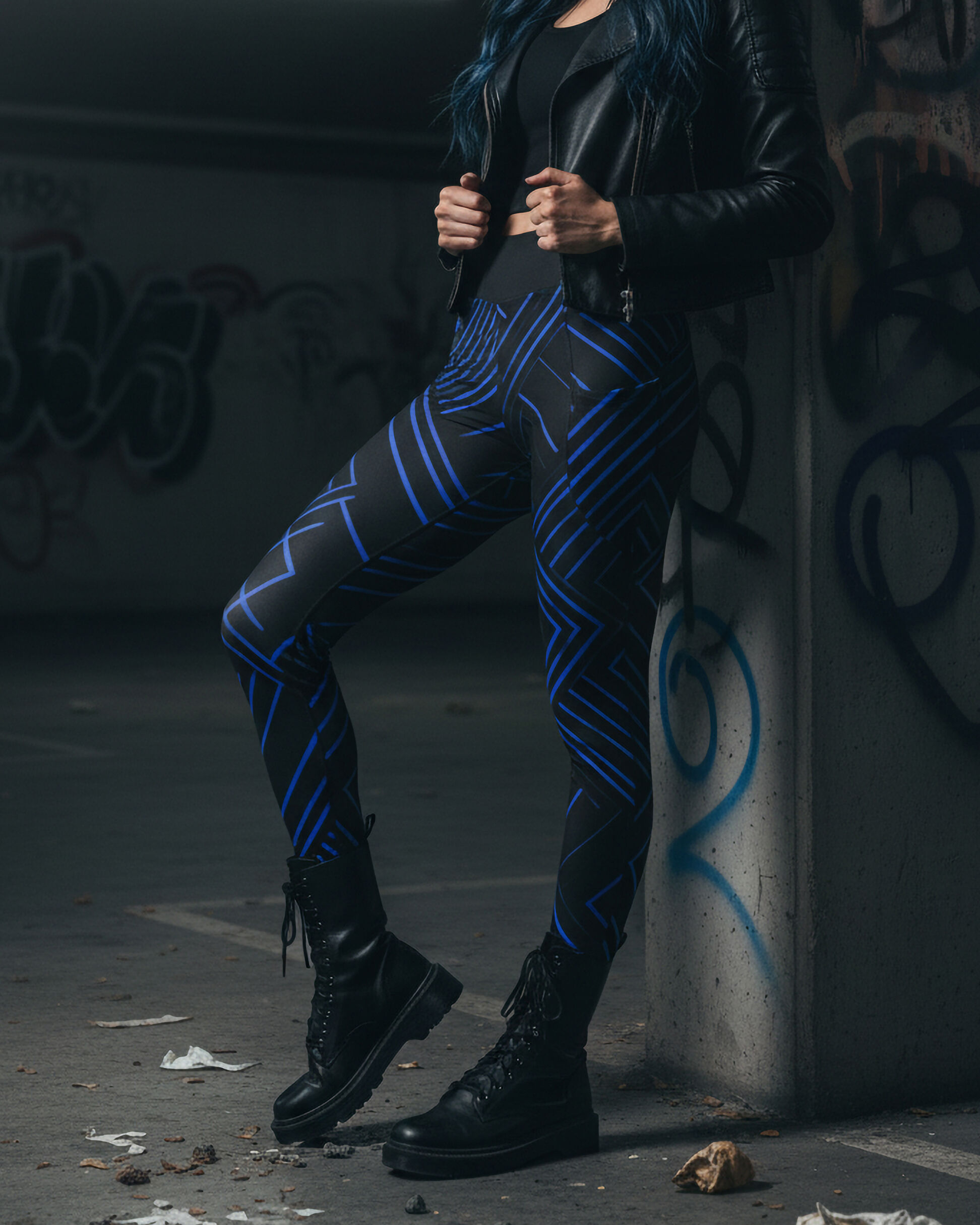 Unleash your urban edge with the Blue Lines Futuristic Leggings — where sleek geometry meets active performance. The sharp electric-blue line pattern over a matte black base delivers a bold, cyber-inspired aesthetic that stands out whether you’re at the gym or hitting the streets.