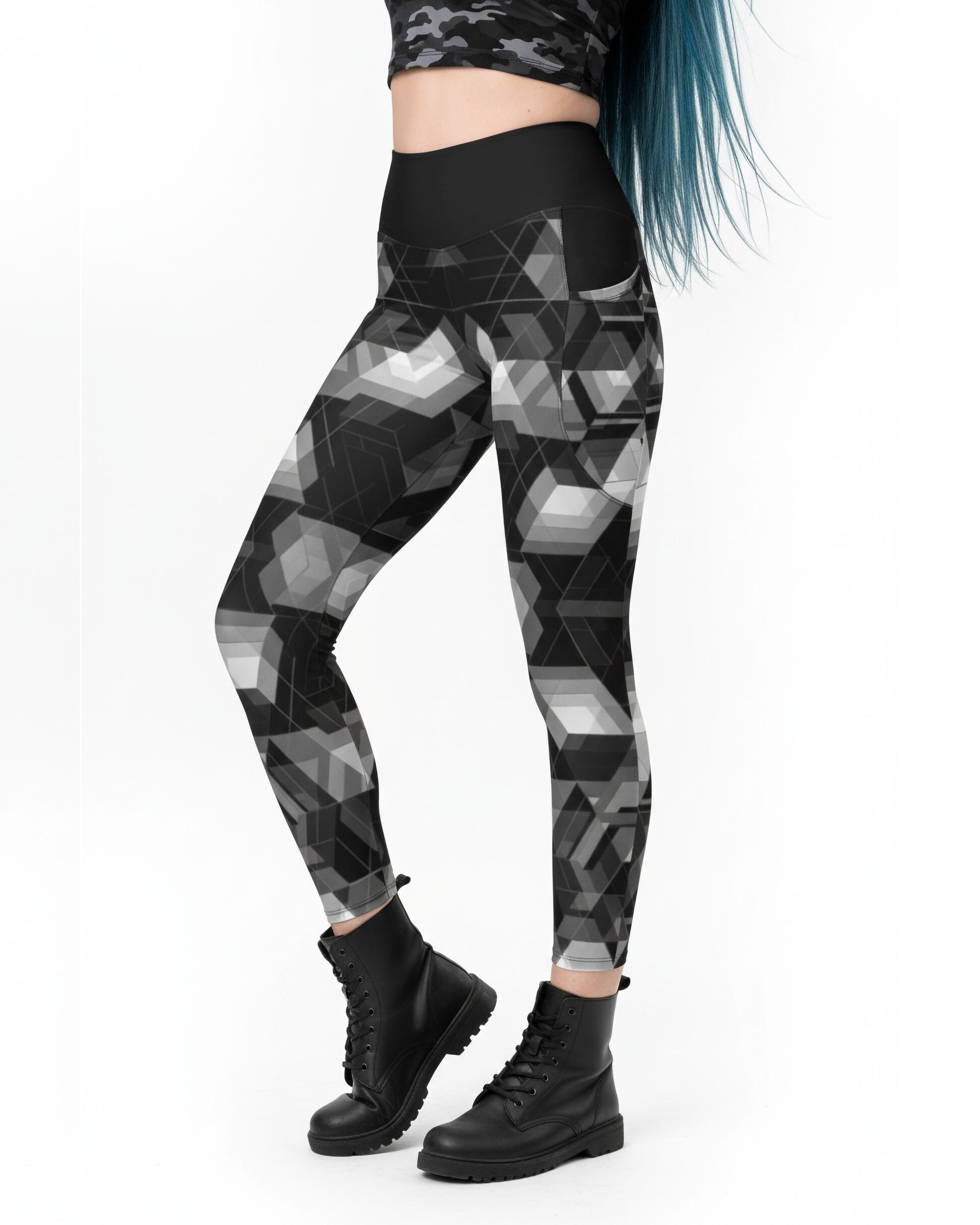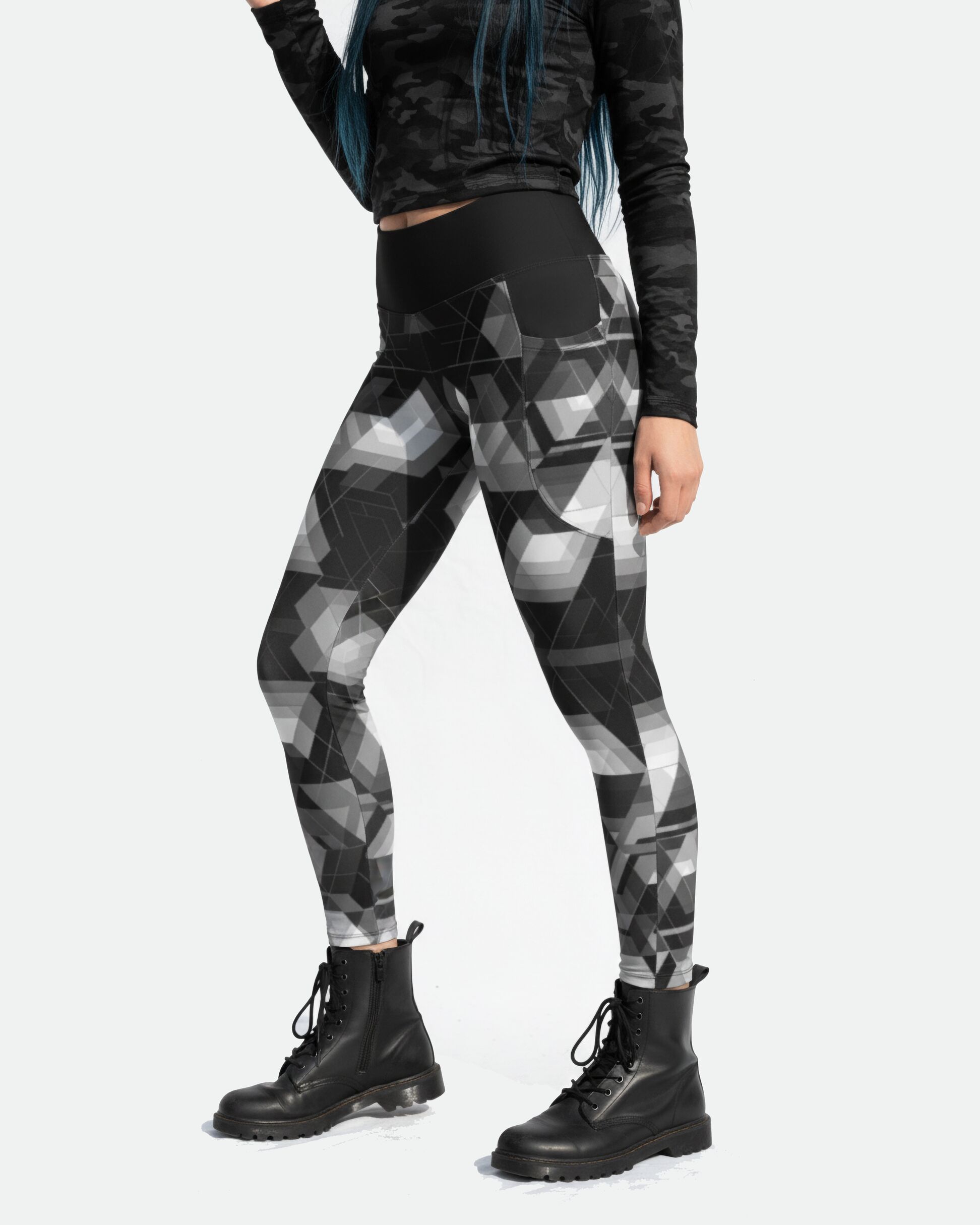 Turn up the energy with these Black & Grey Geometric Rave Leggings — designed for movement, comfort, and self-expression. The bold geometric 3D-style print gives a futuristic vibe that’s perfect for raves, festivals, workouts, or daily streetwear.