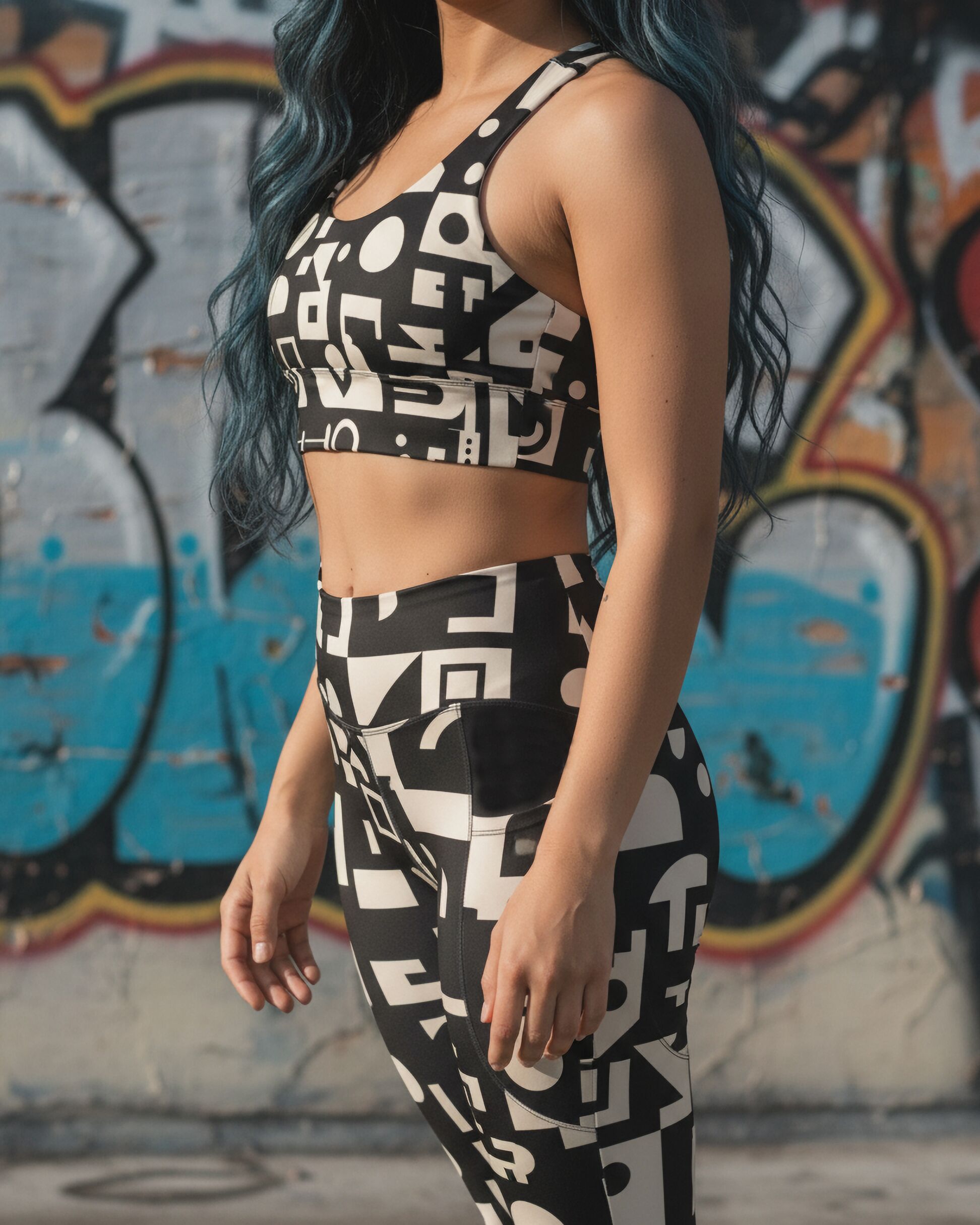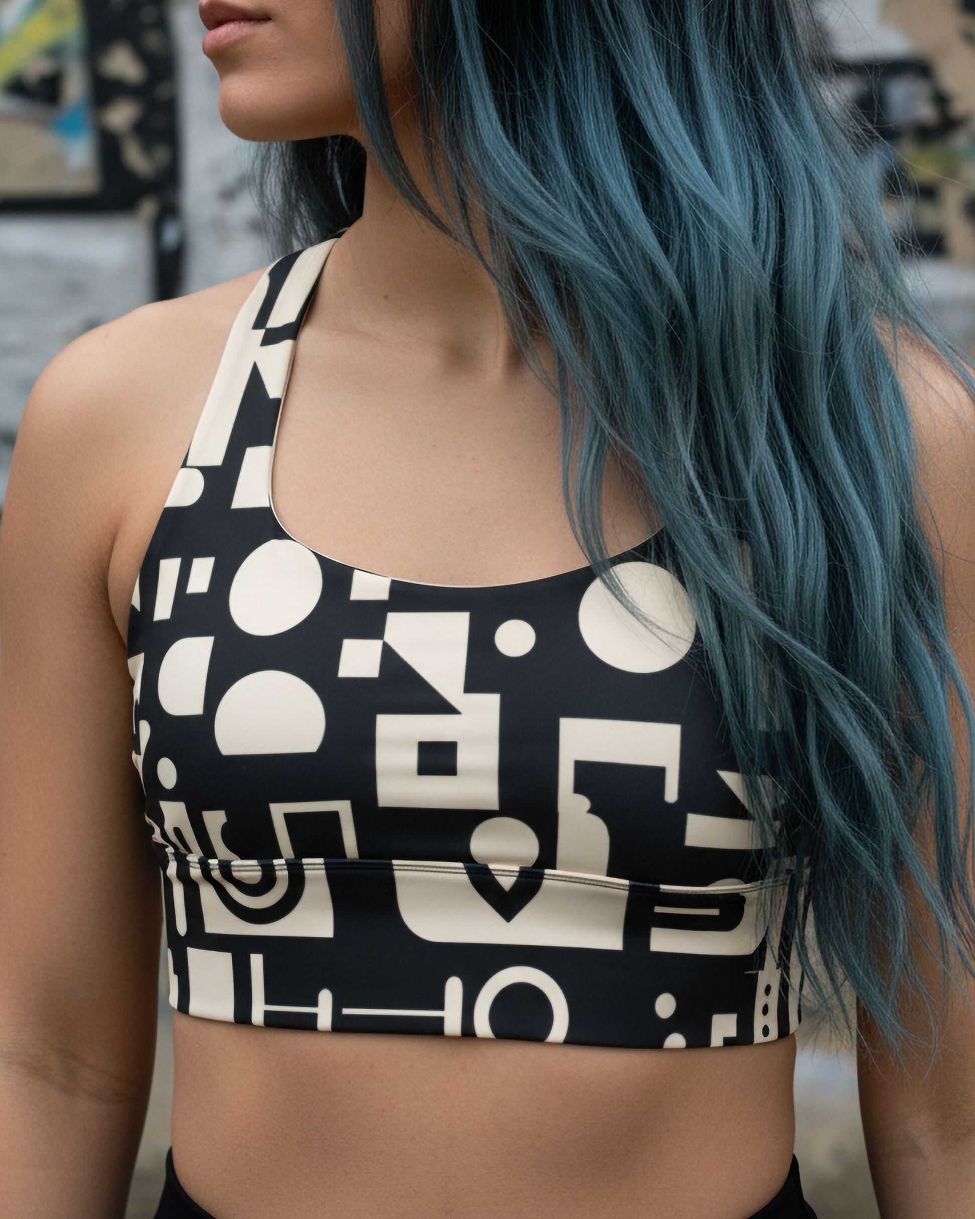 Step into the future of fashion with this Futuristic Geometric Crop Top, where modern art meets high-performance comfort. Designed for raves, workouts, and everyday streetwear, this longline sports bra delivers medium to high support, a compression fit, and a sleek racerback design that moves with you.