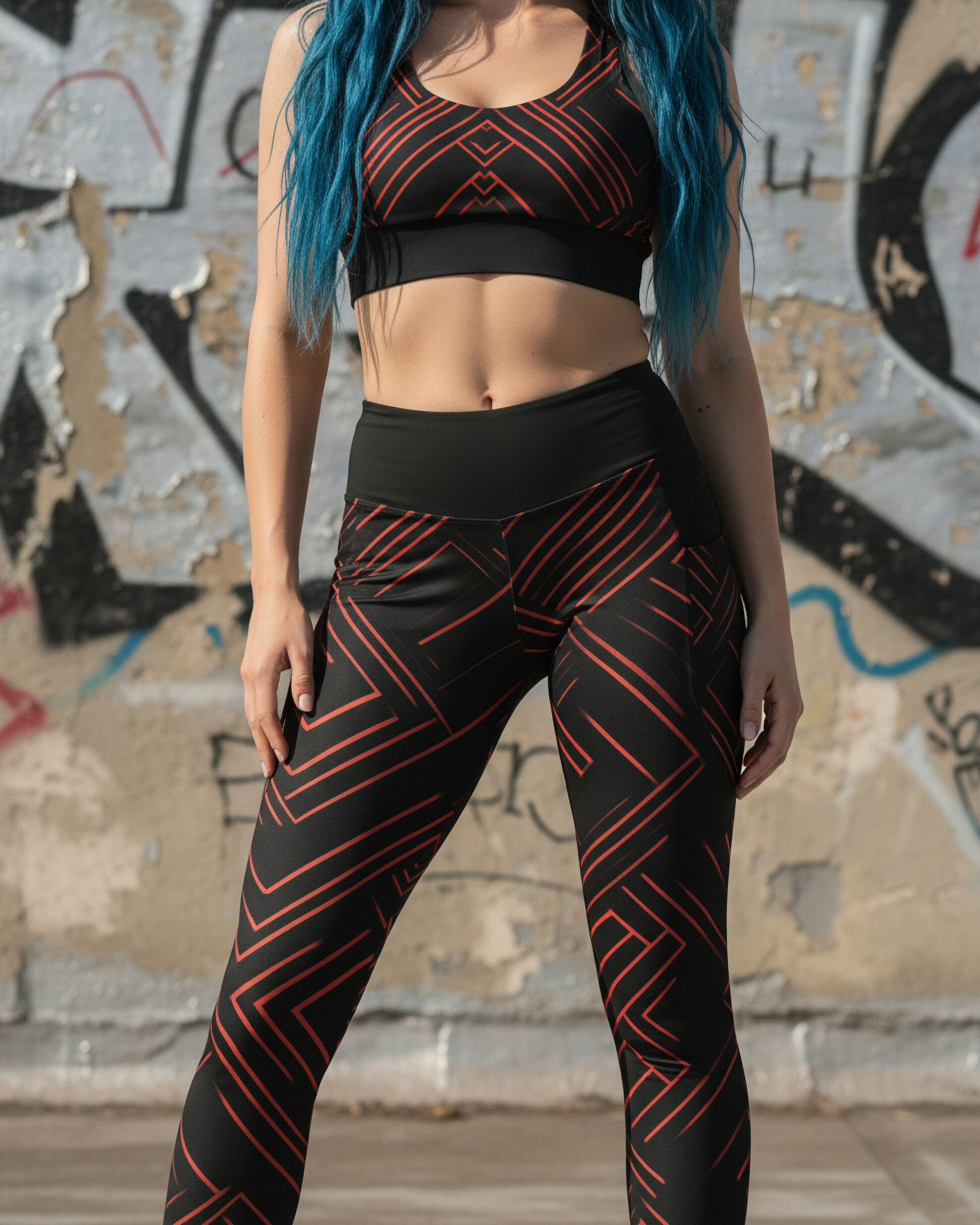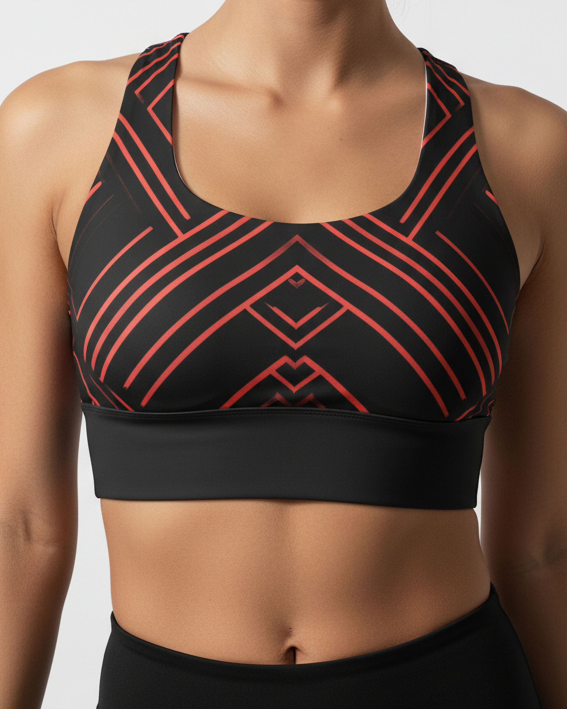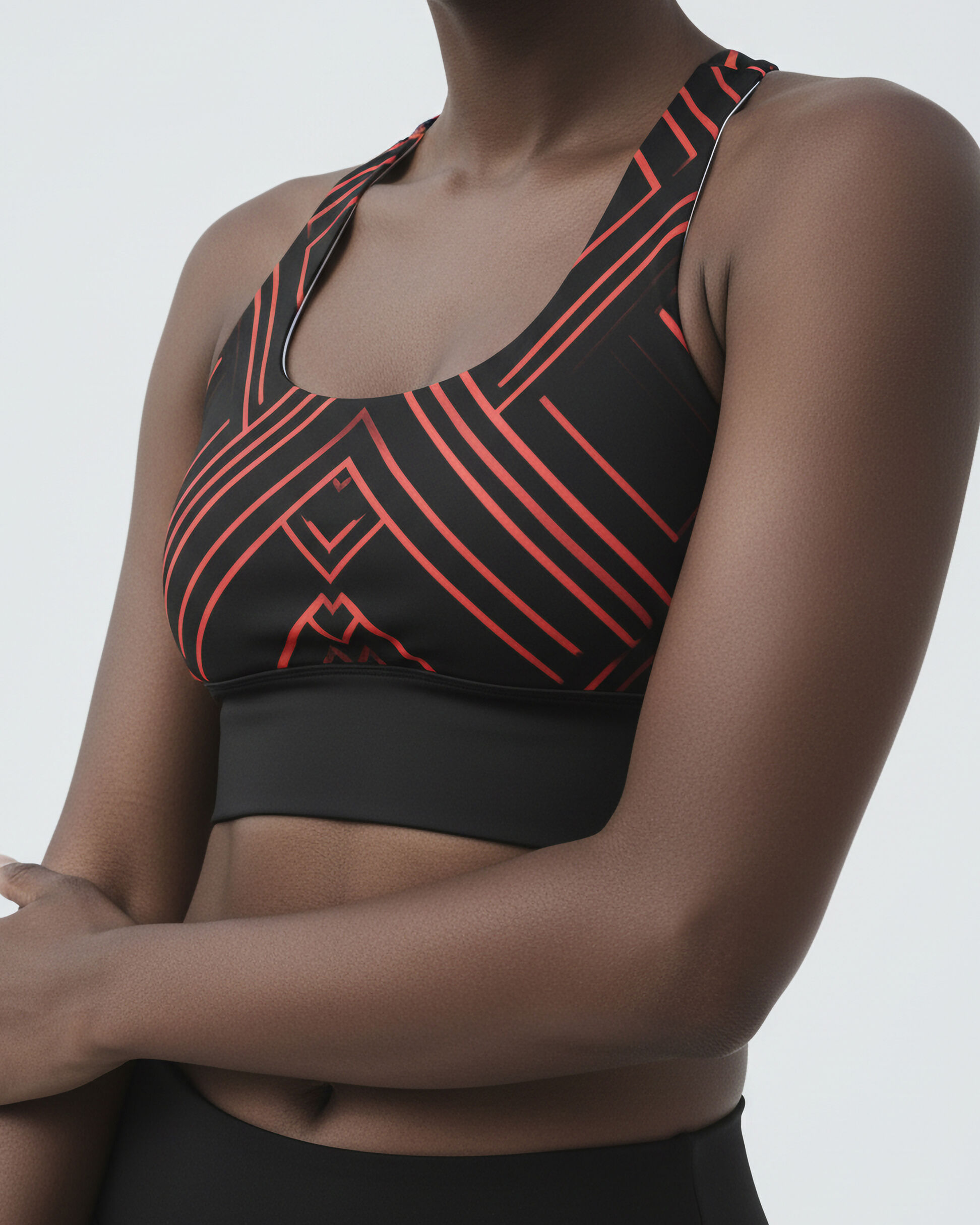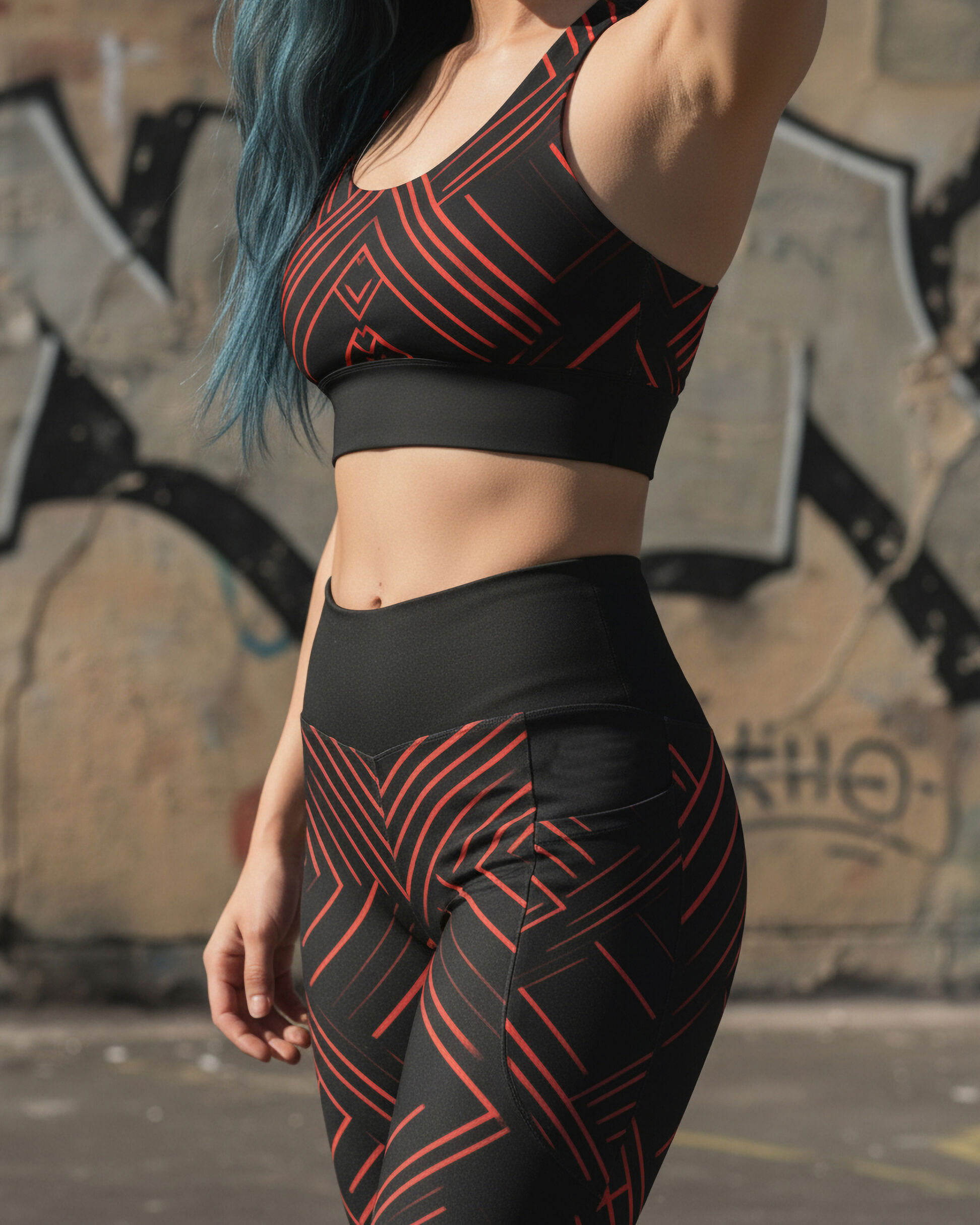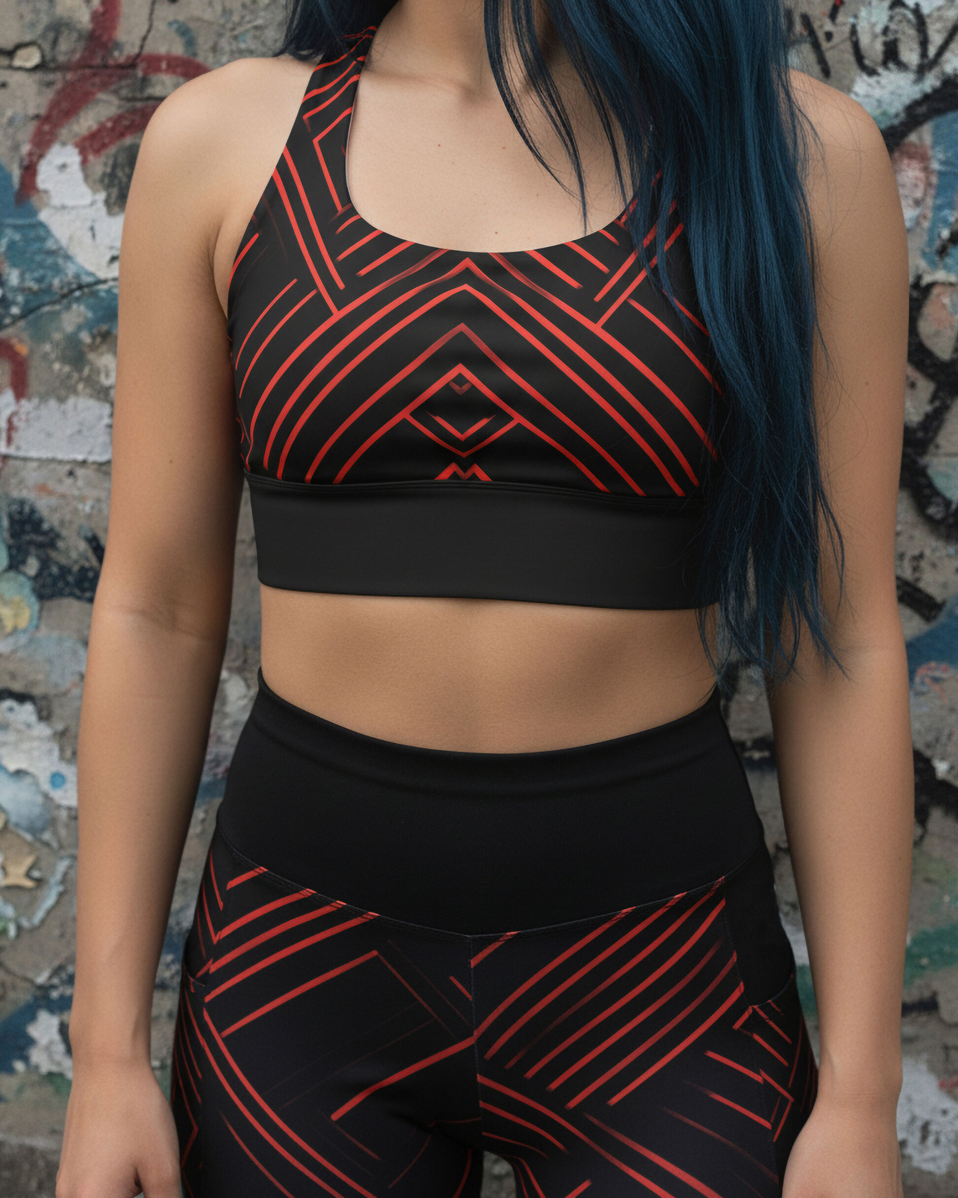 Ignite your energy with the Red Lines Top — a fusion of cyberpunk geometry and high-performance design. Its bold red pattern over a matte black base creates a dynamic, futuristic aesthetic, perfect for festivals, workouts, and streetwear fashion.