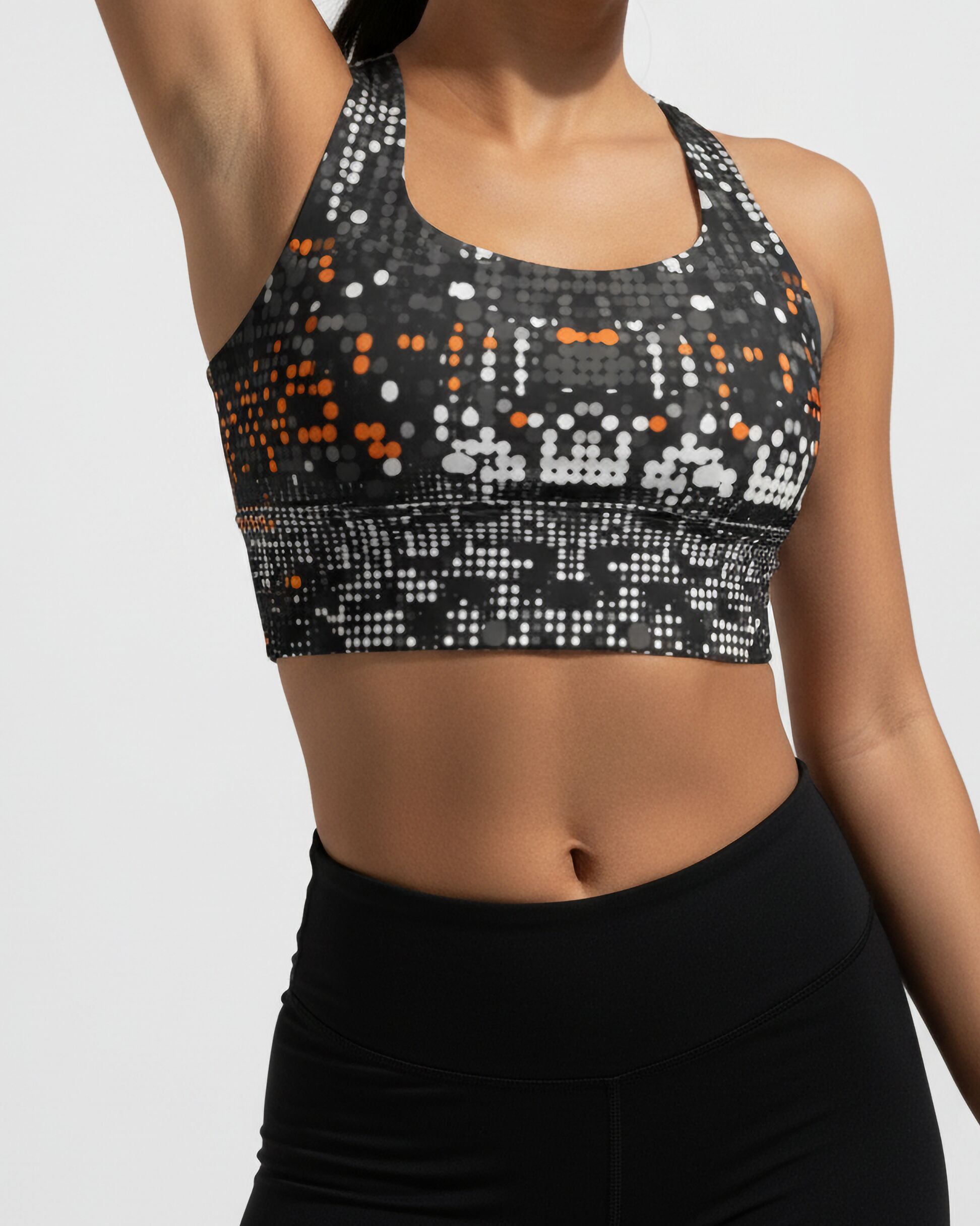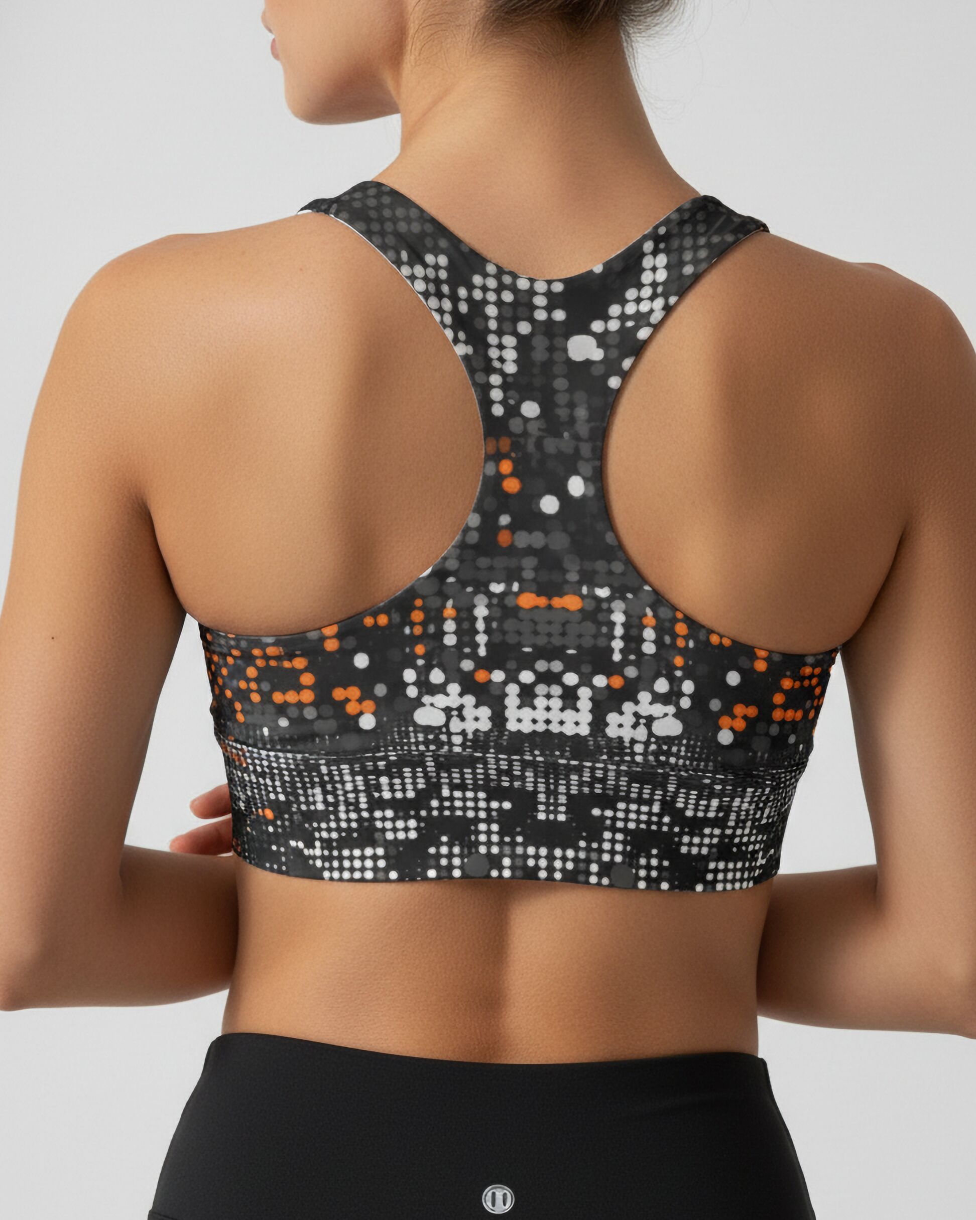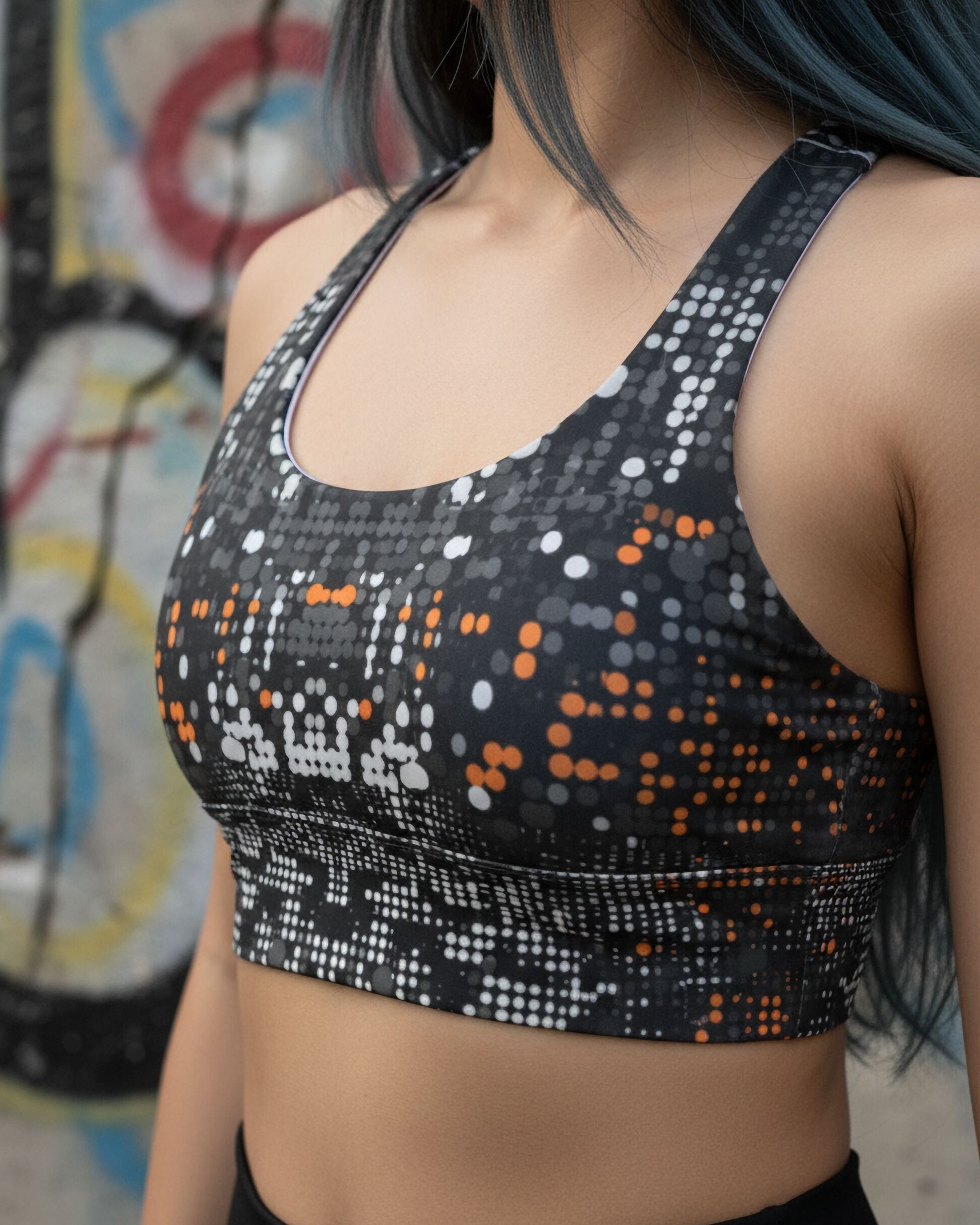 The Polka Dot Crop Top combines cyberpunk style, digital aesthetics, and performance comfort. Perfect for raves, sports, or streetwear, it offers medium to high support, a shaping compression fit, and a racerback design for maximum freedom of movement.